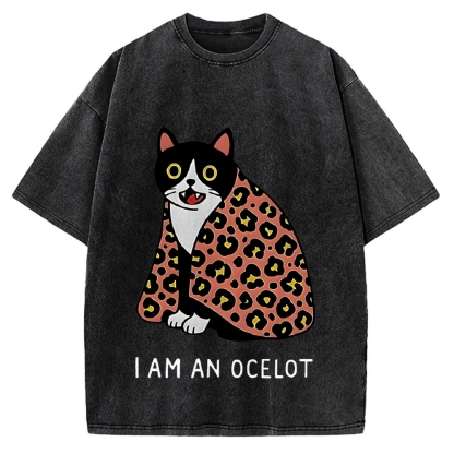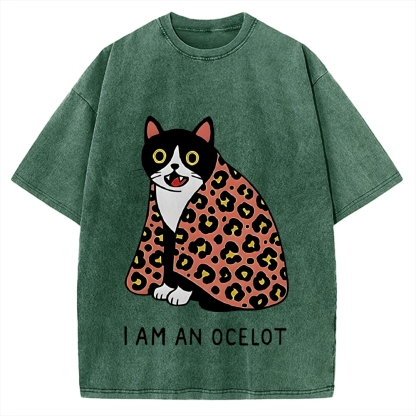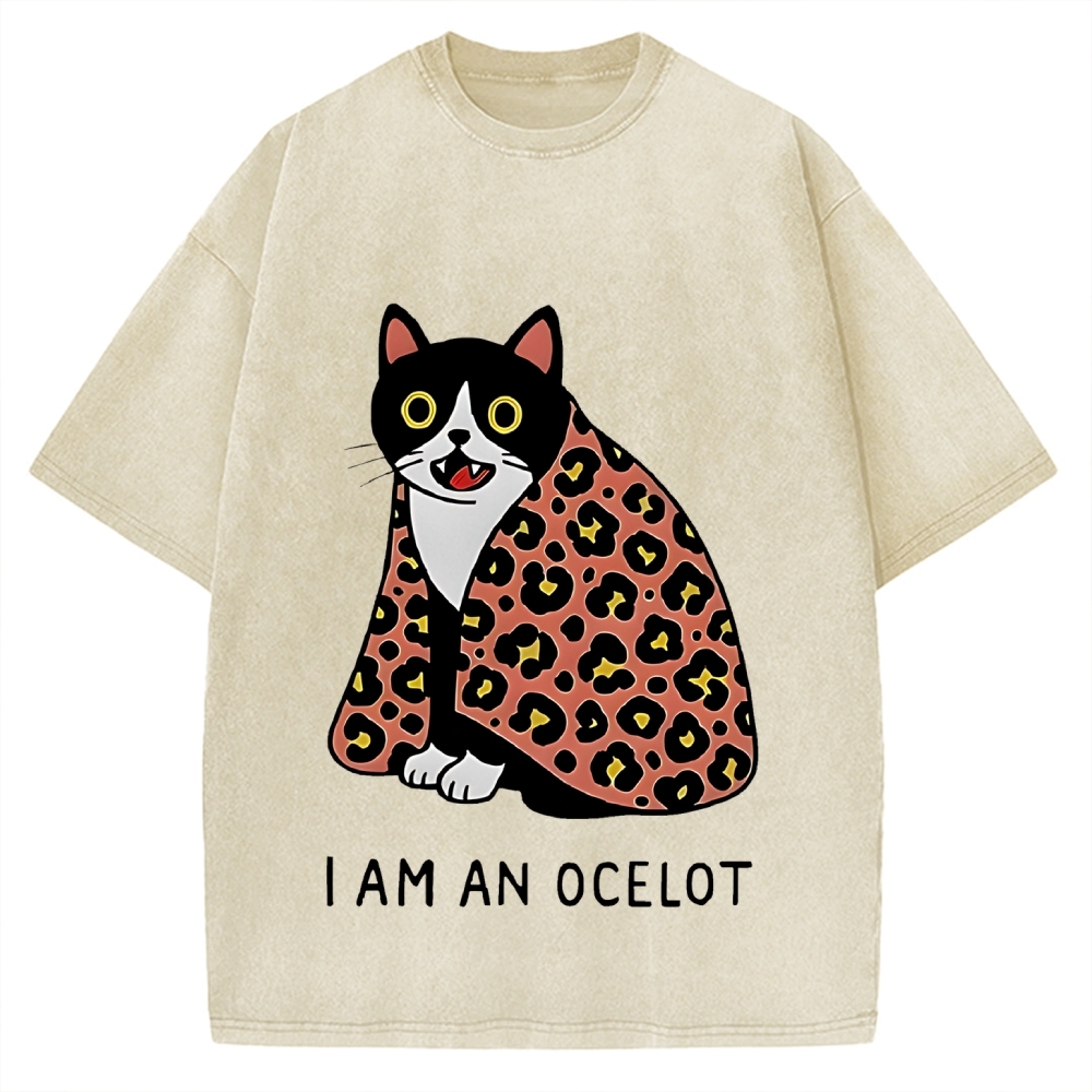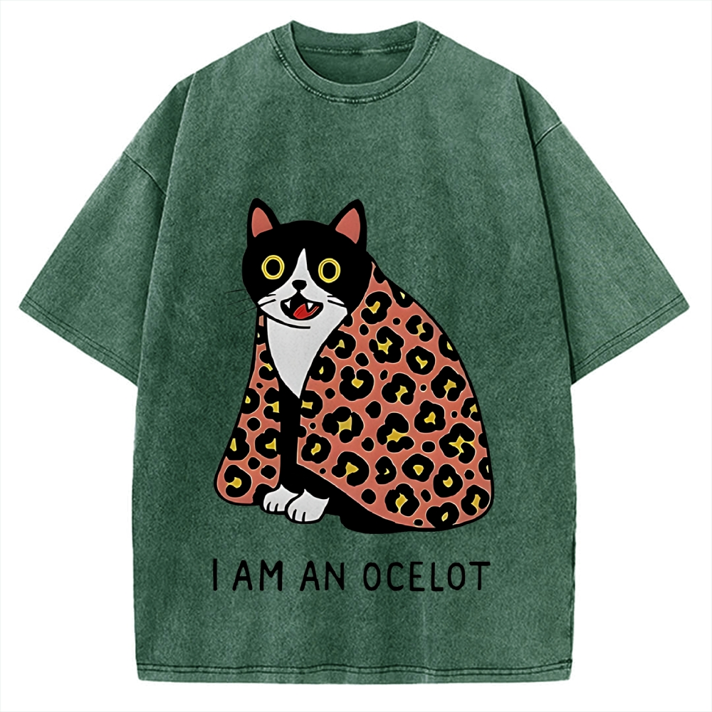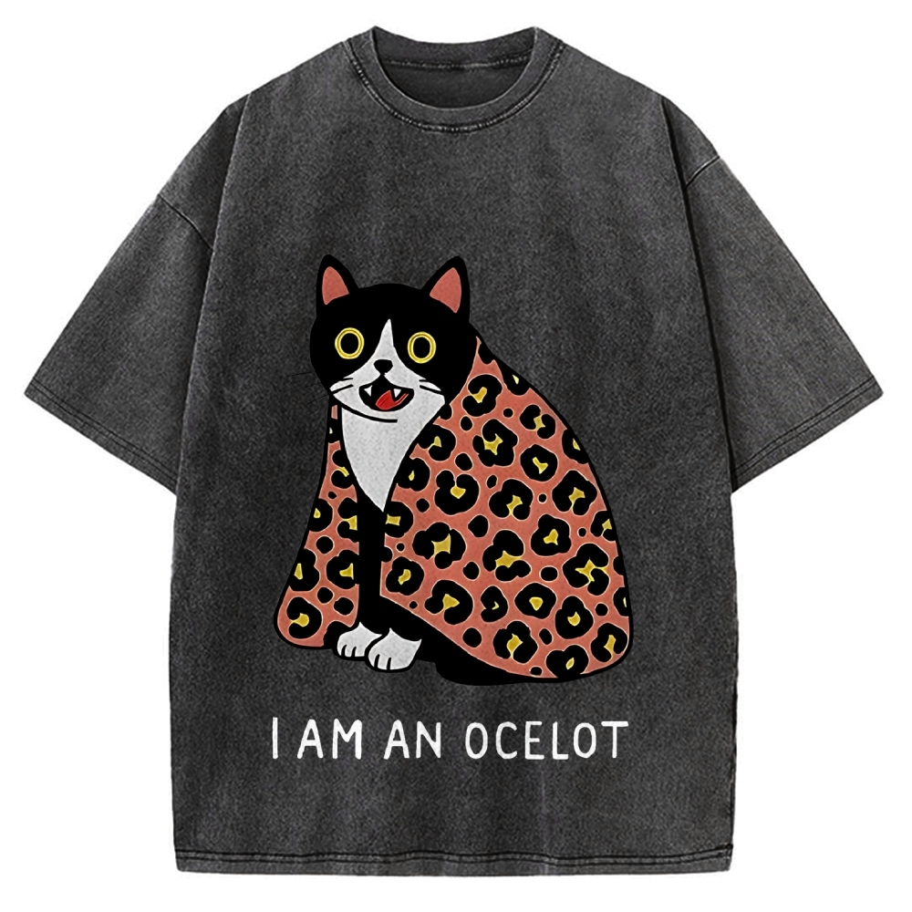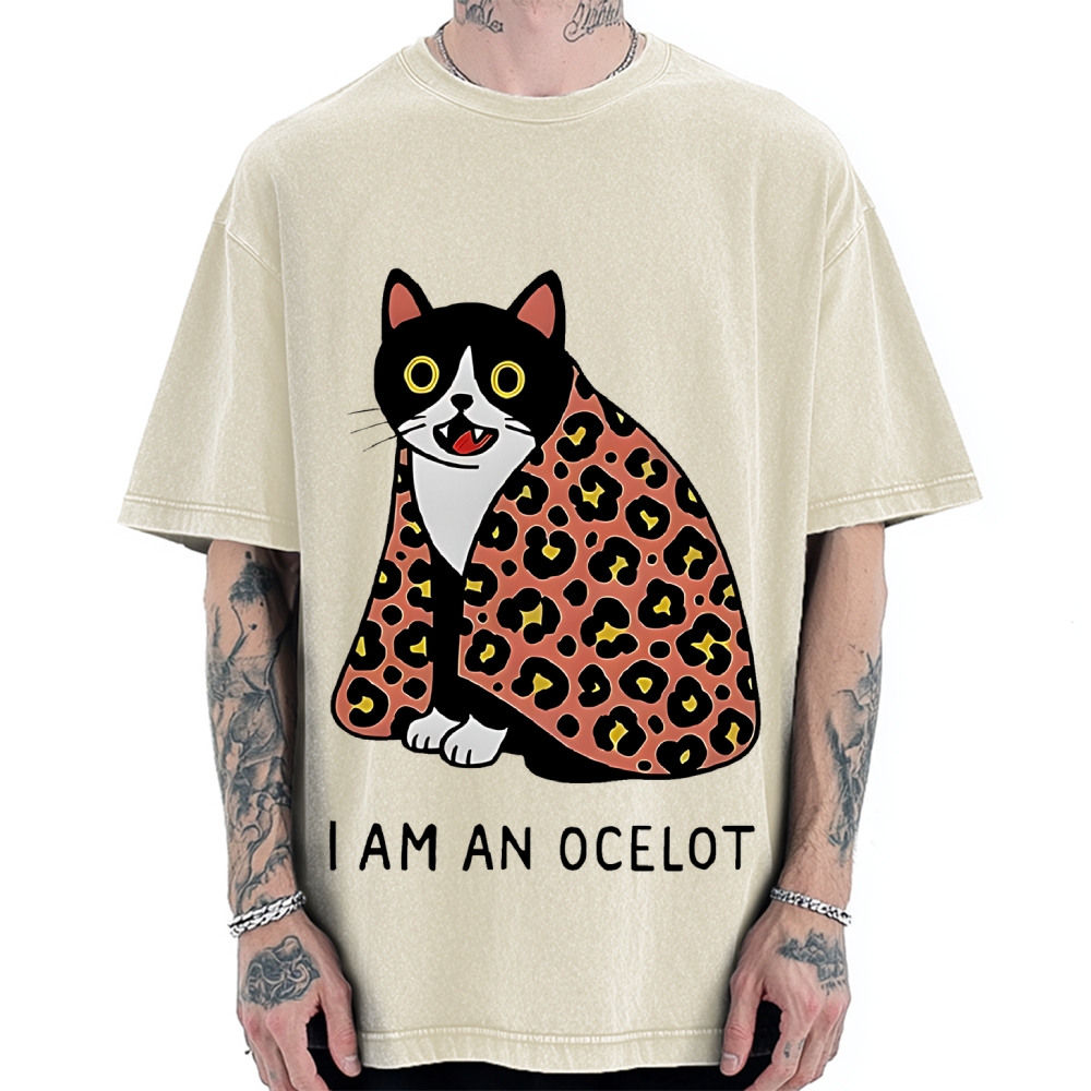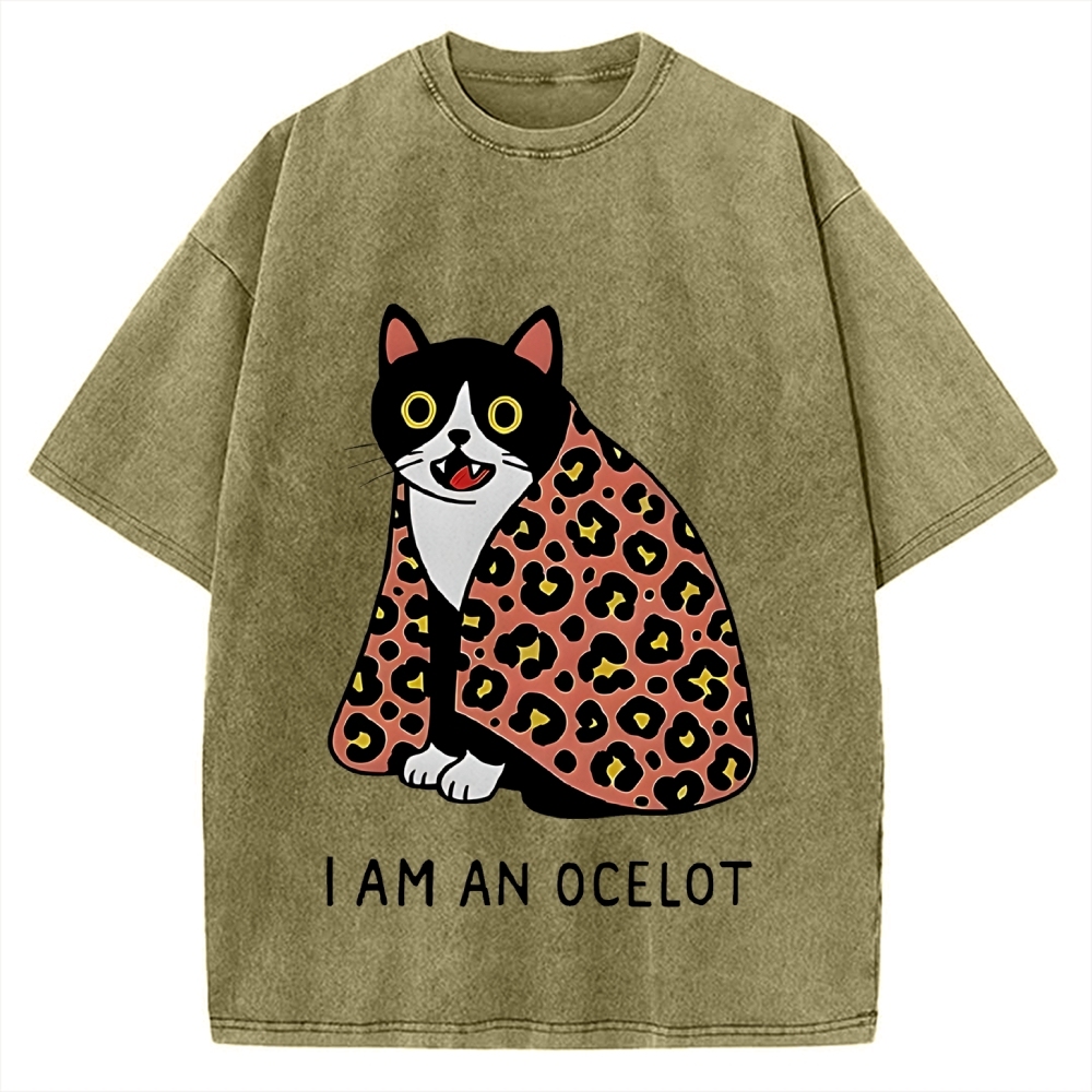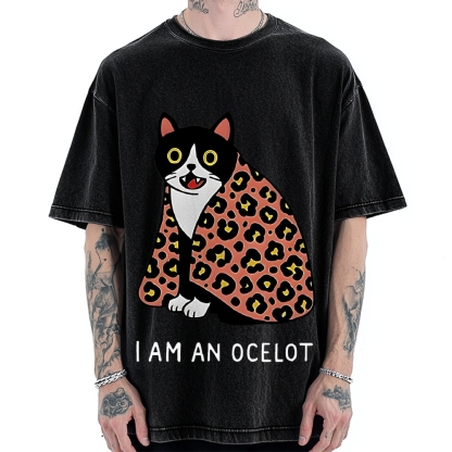 Tokyo-Assassin Ocelot Cat Vintage Washed T-shirt