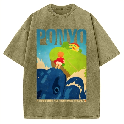 Tokyo-Assassin Ponyo Printed Vintage Washed T-shirt