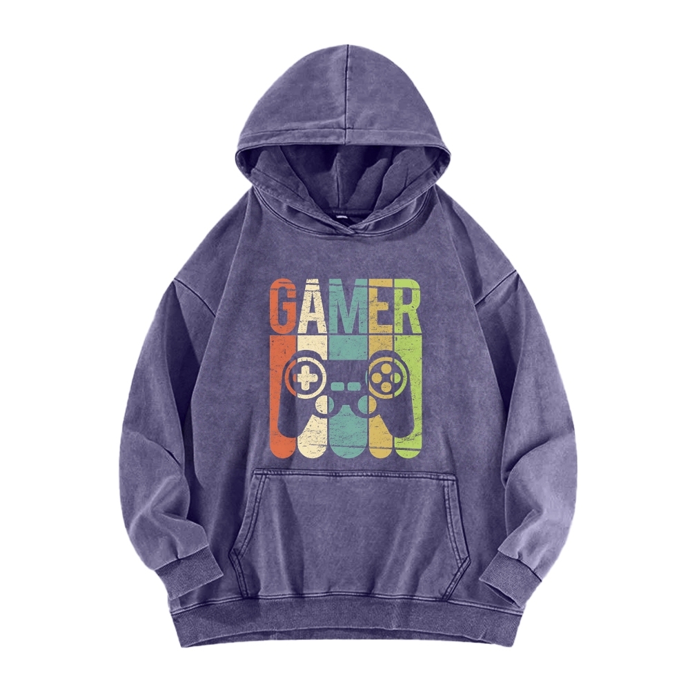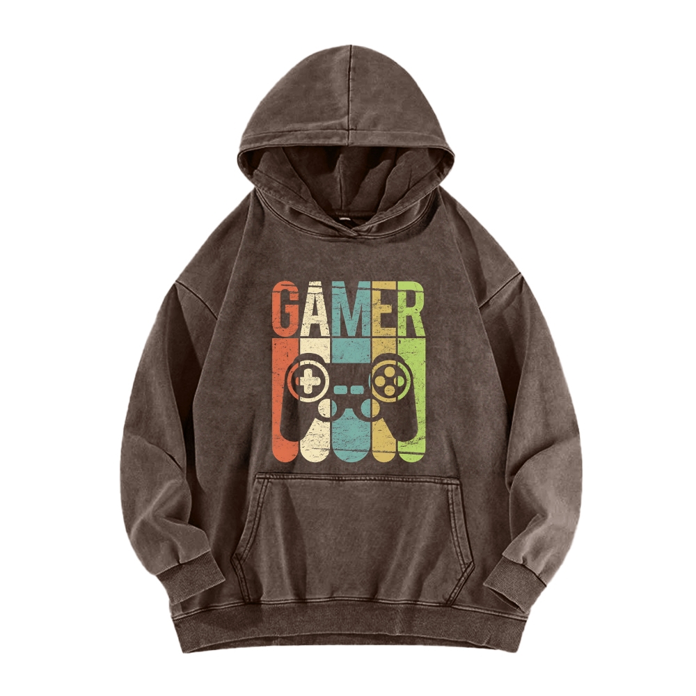 Tokyo-Assassin Retro Classic Game Controller Vintage Washed Hoodie