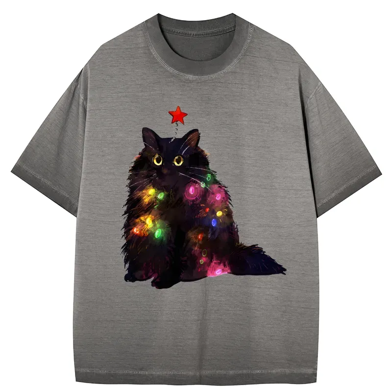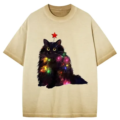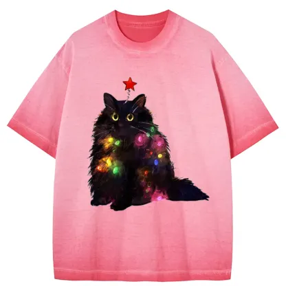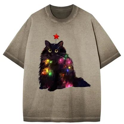 Tokyo-Assassin Christmas Lights Cat Gradient Washed T-Shirt