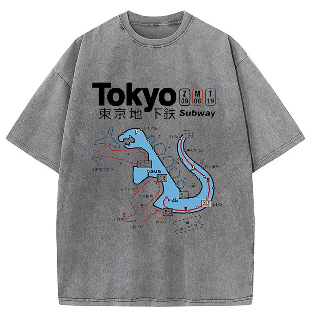 Tokyo-Assassin Tokyo Subway Map Washed T-Shirt