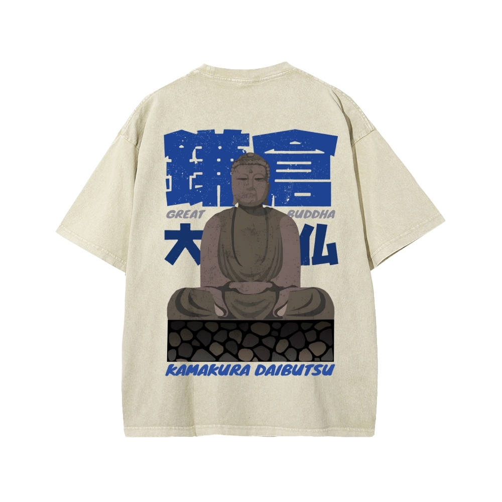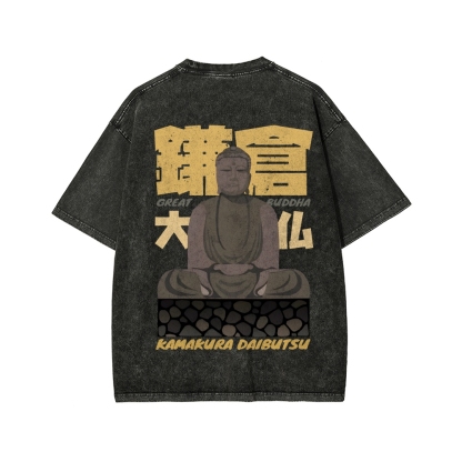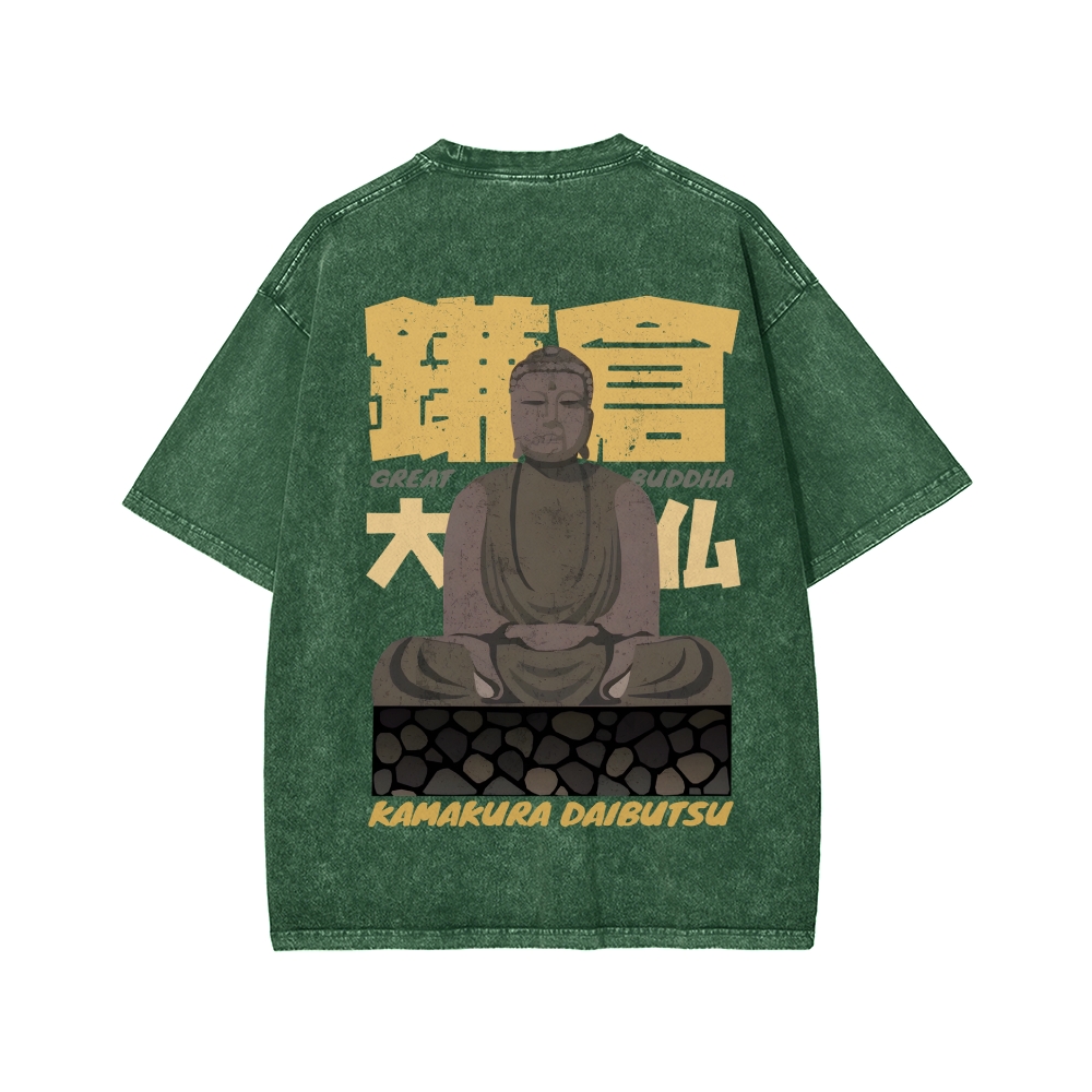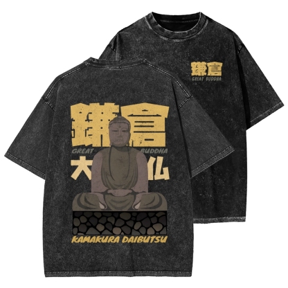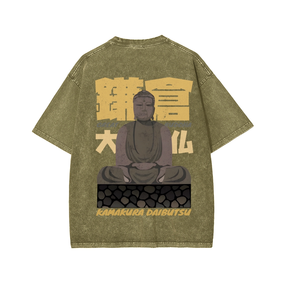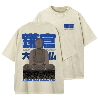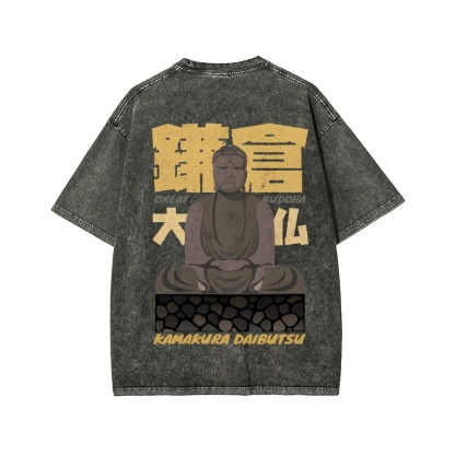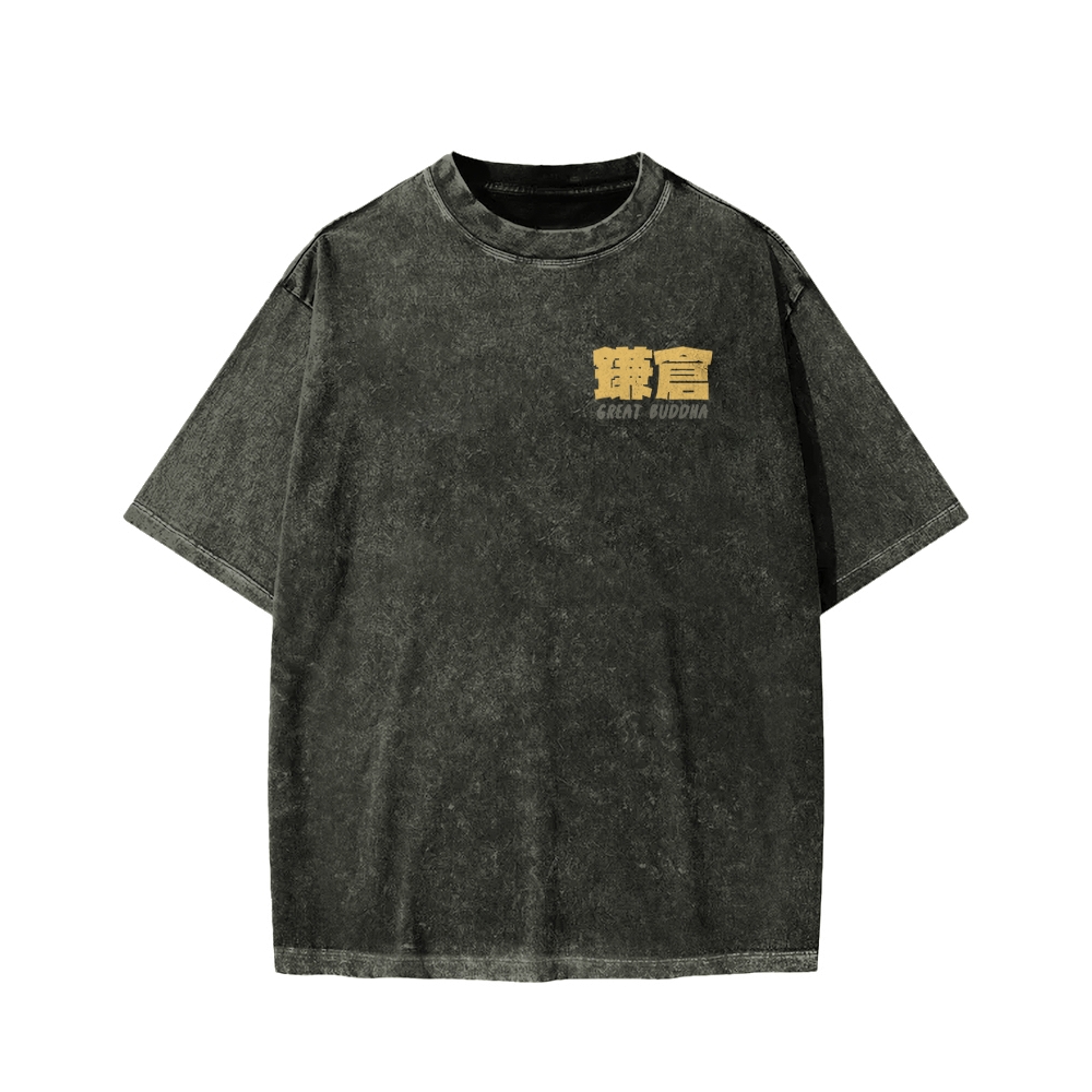 Tokyo-Assassin Buddhism Kamakura Daibutsu Great Buddha Front And Back Printing Washed T-shirt