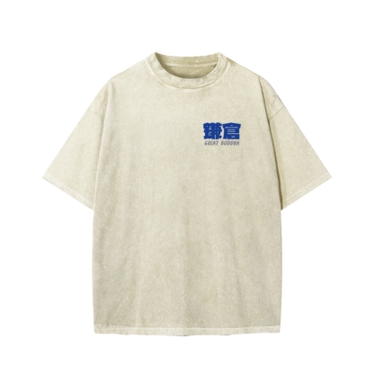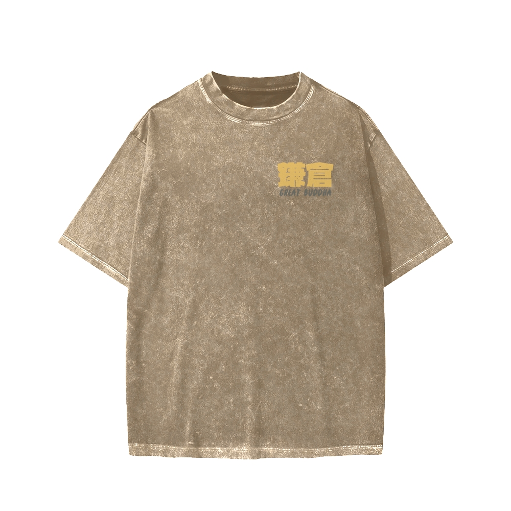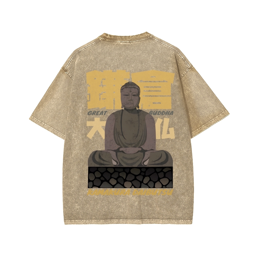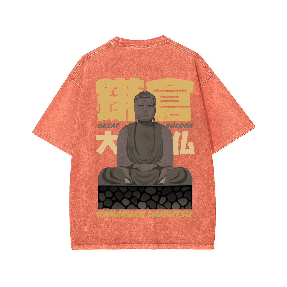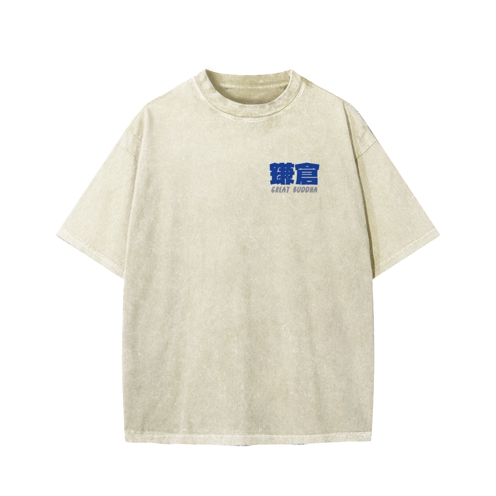 Tokyo-Assassin Buddhism Kamakura Daibutsu Great Buddha Front And Back Printing Washed T-shirt
