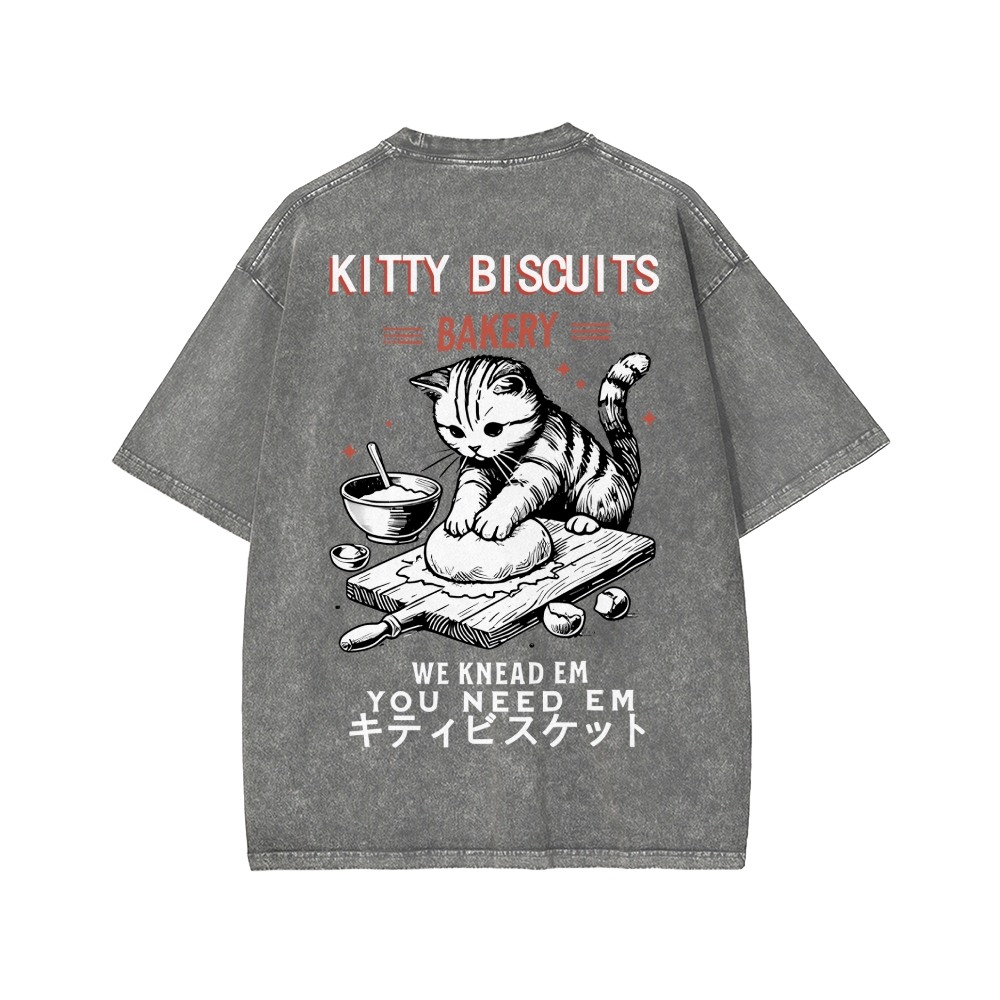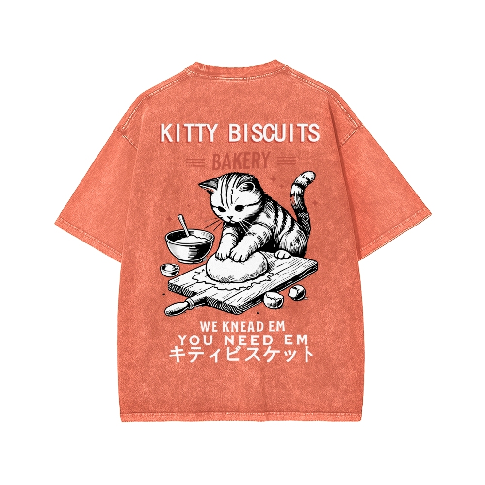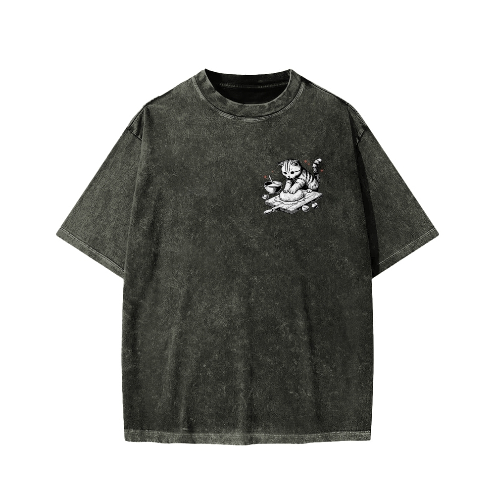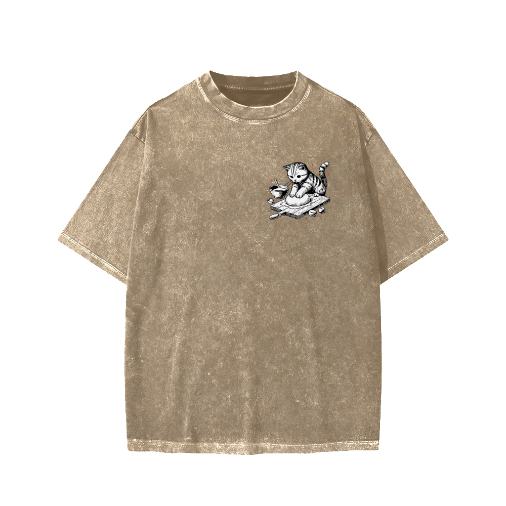 Tokyo-Assassin Cat Bakery Front And Back Printing Washed T-shirt