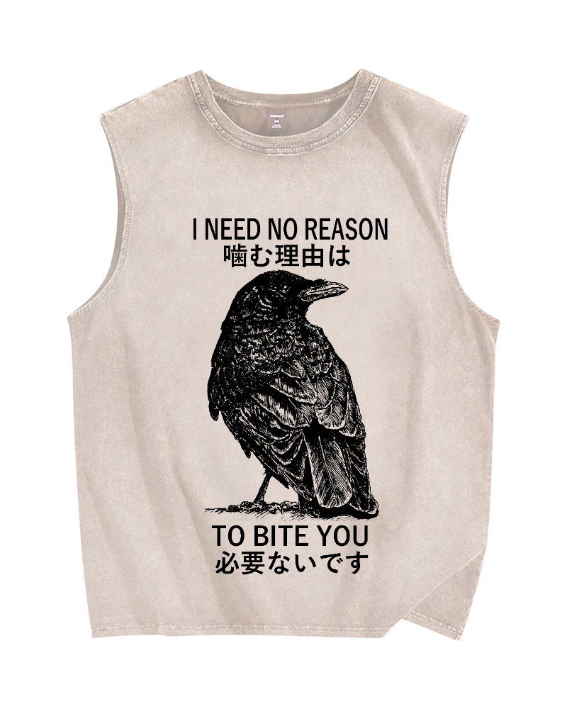 Tokyo-Assassin Crow Pecking People Vintage Distressed Washed Tank Top