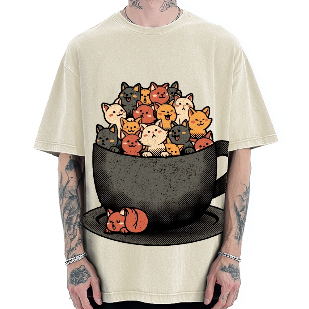 Tokyo-Assassin Cup Of Cats Vintage Washed T-shirt