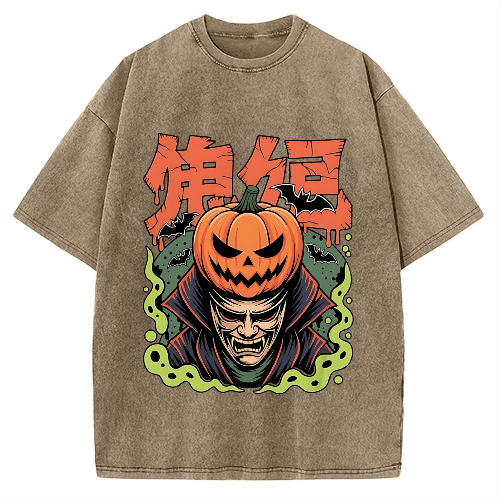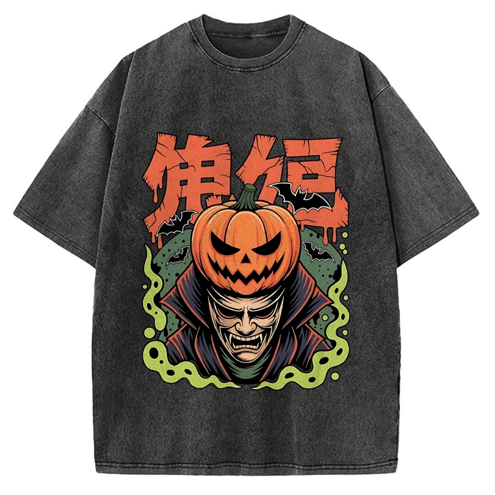 Tokyo-Assassin Halloween Pumpkin Yokai Vintage Washed T-shirt