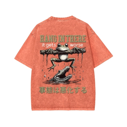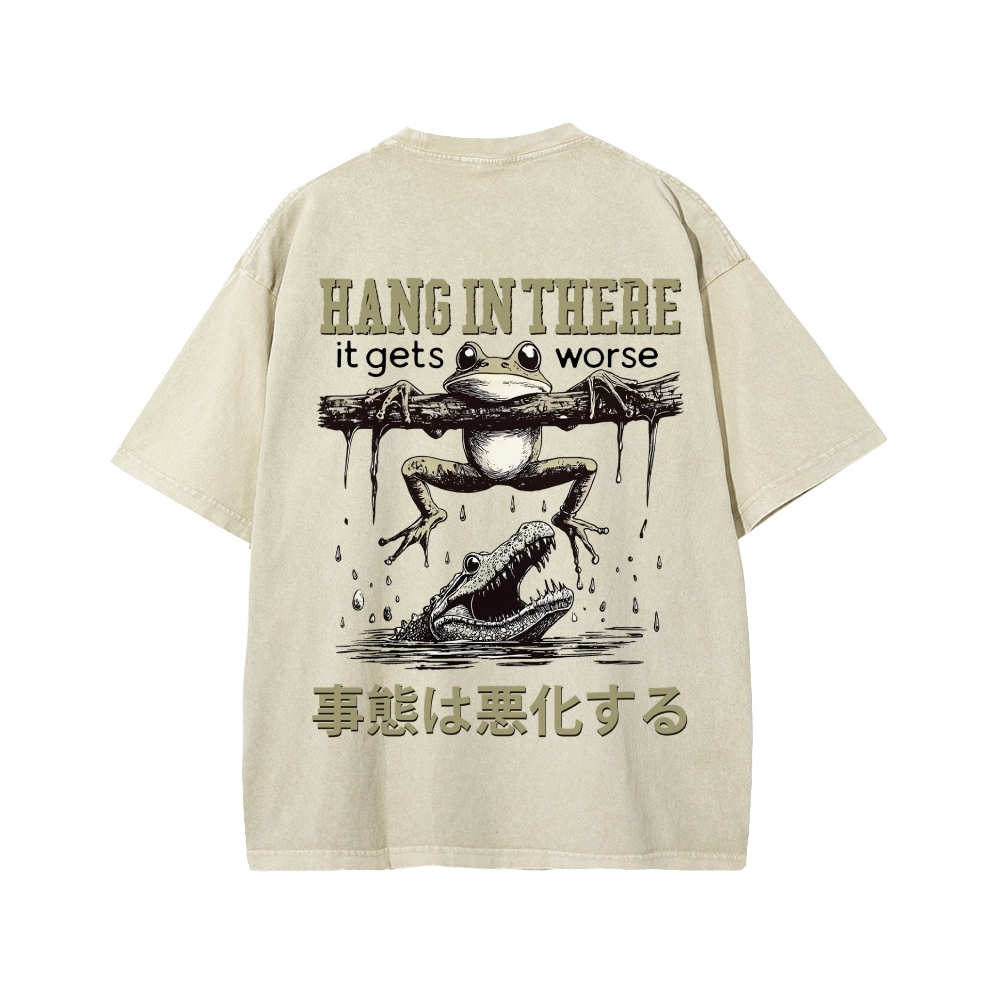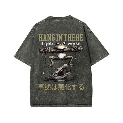 Tokyo-Assassin Hang in There It Gets Worse Front And Back Printing Washed T-shirt