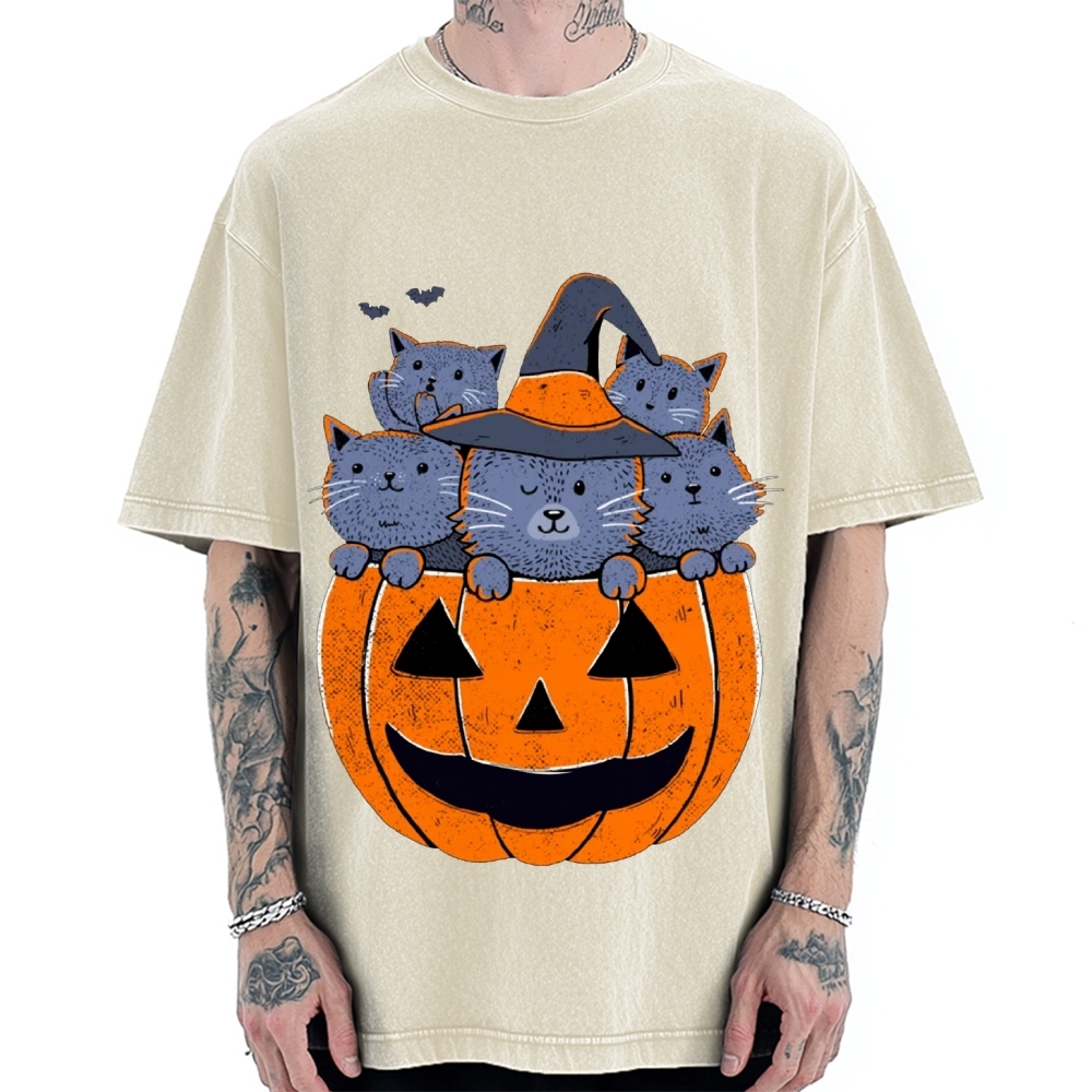 Tokyo-Assassin Jack-o'-lantern cat Vintage Washed T-shirt