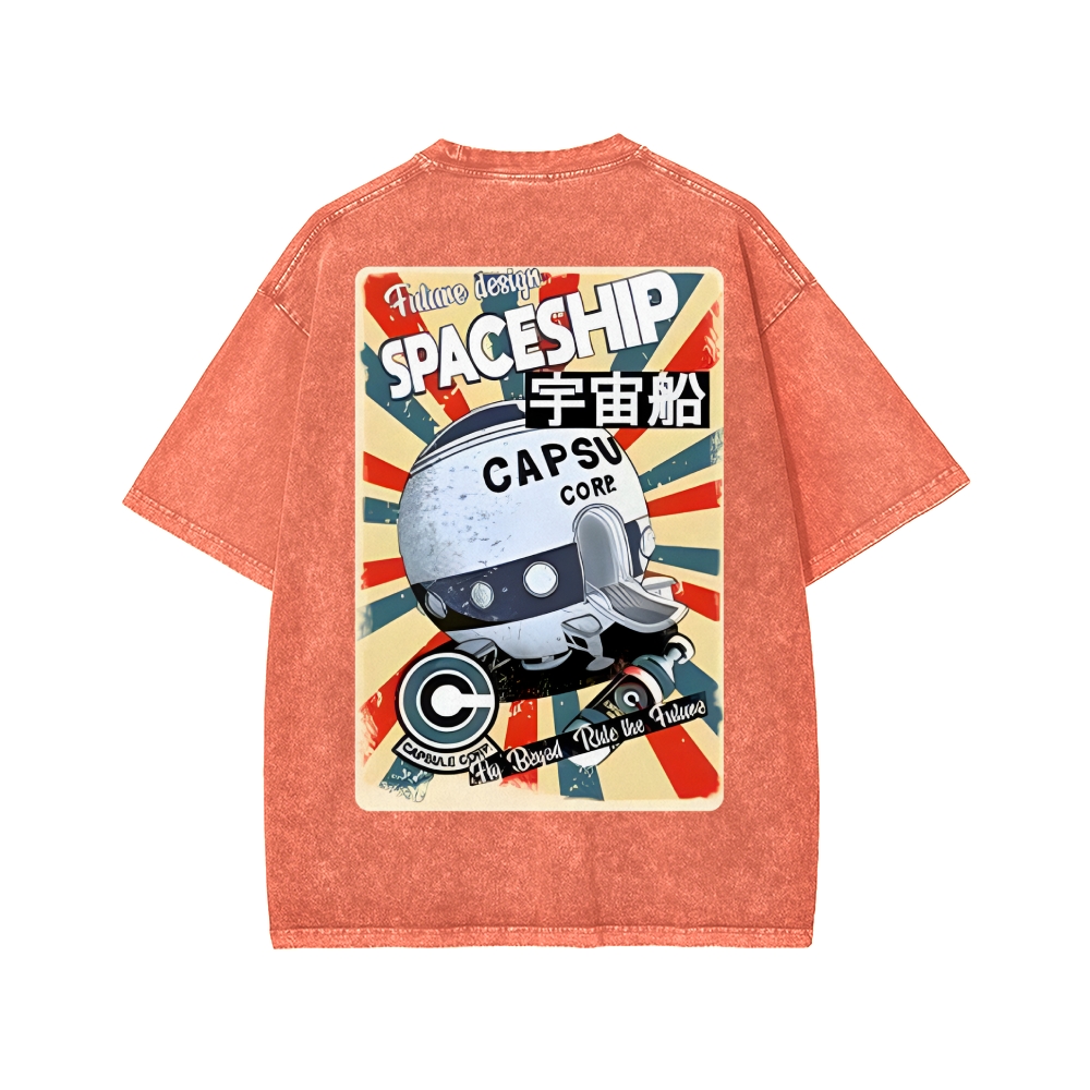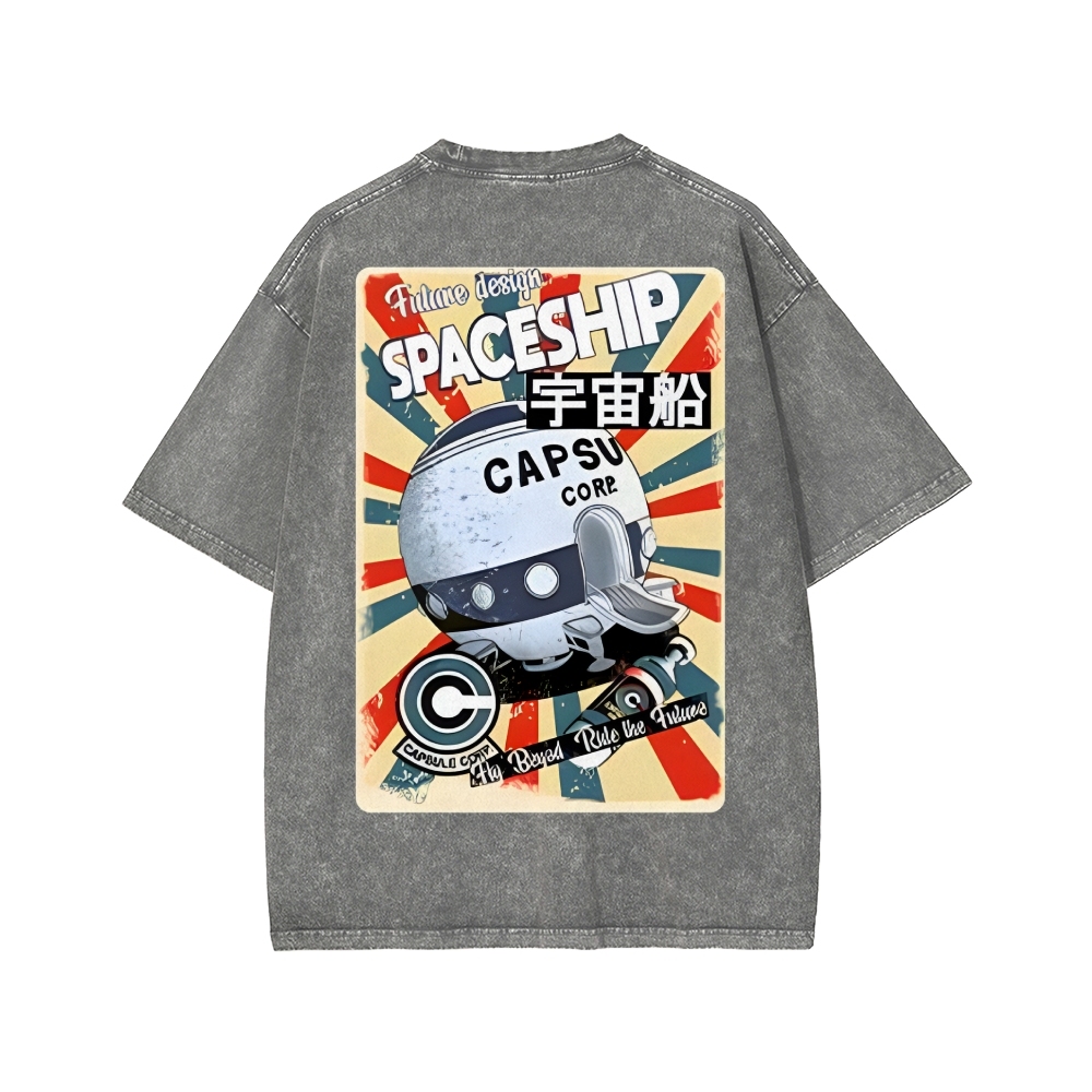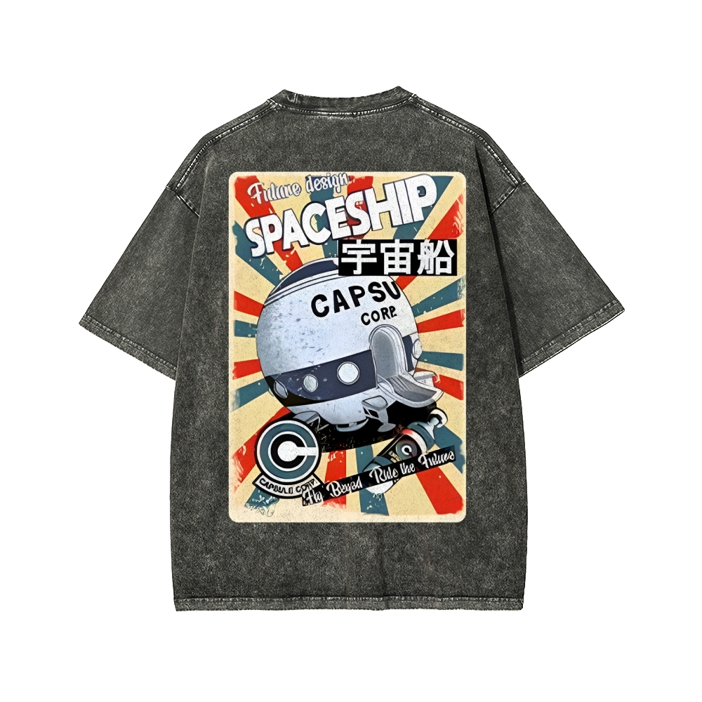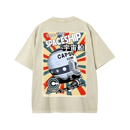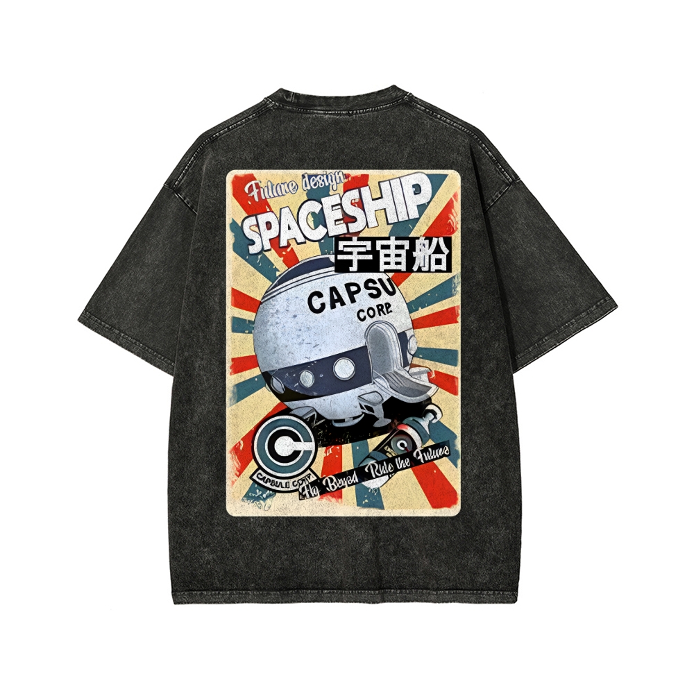 Tokyo-Assassin Retro Spaceship Front And Back Printing Washed T-shirt