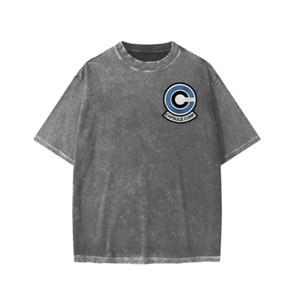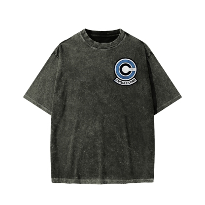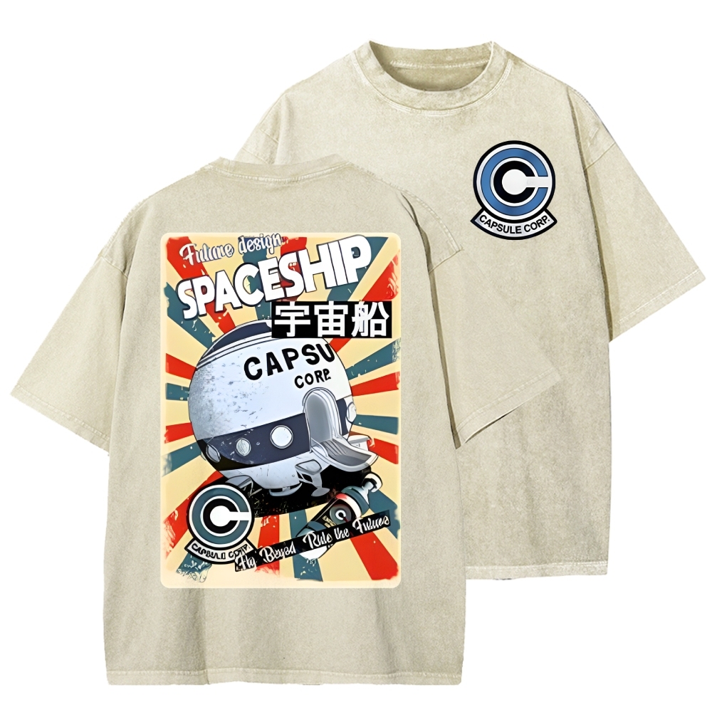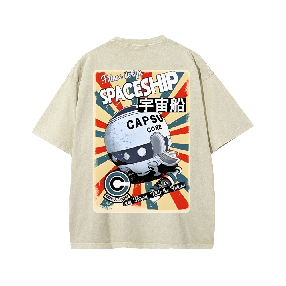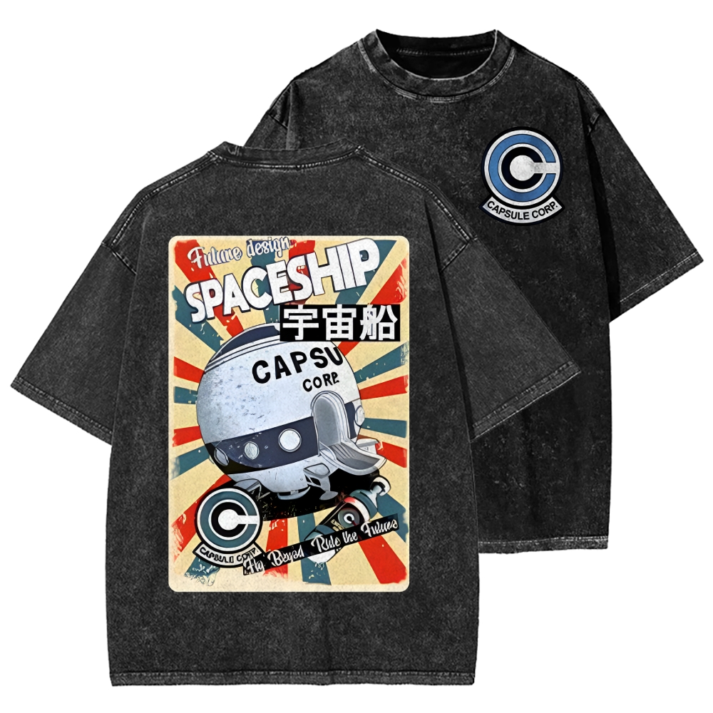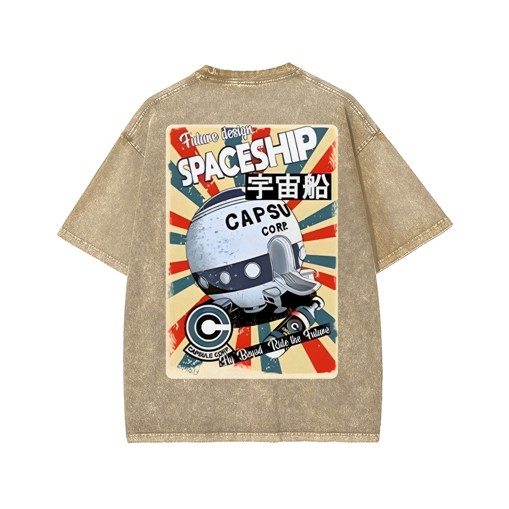 Tokyo-Assassin Retro Spaceship Front And Back Printing Washed T-shirt