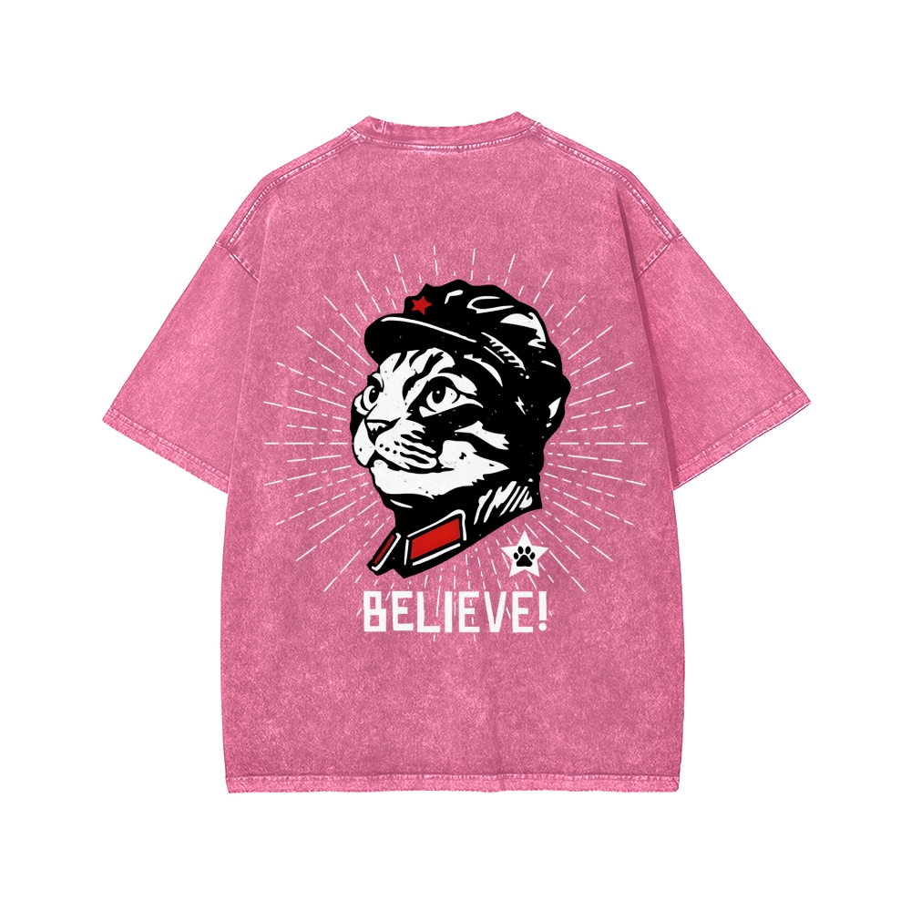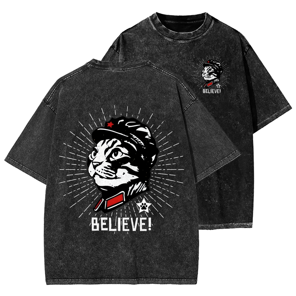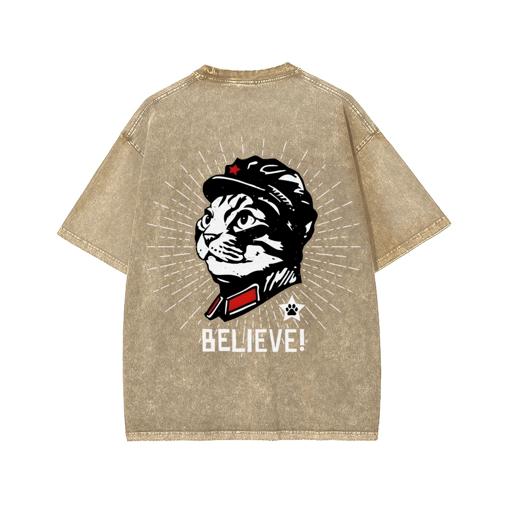 Tokyo-Assassin Trust Cat Chairman Front And Back Printing Washed T-shirt