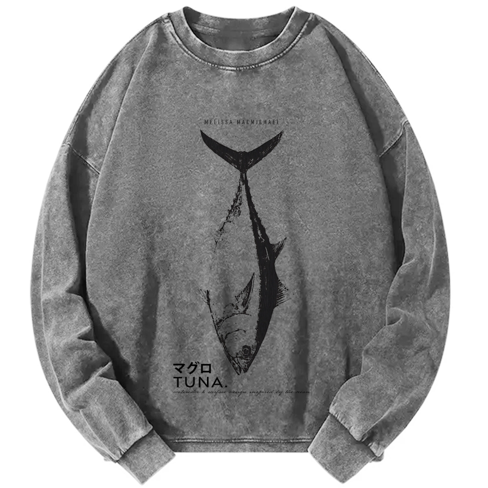 Tokyo-Assassin Tuna Shadowed Fish Vintage Washed Sweatshirts