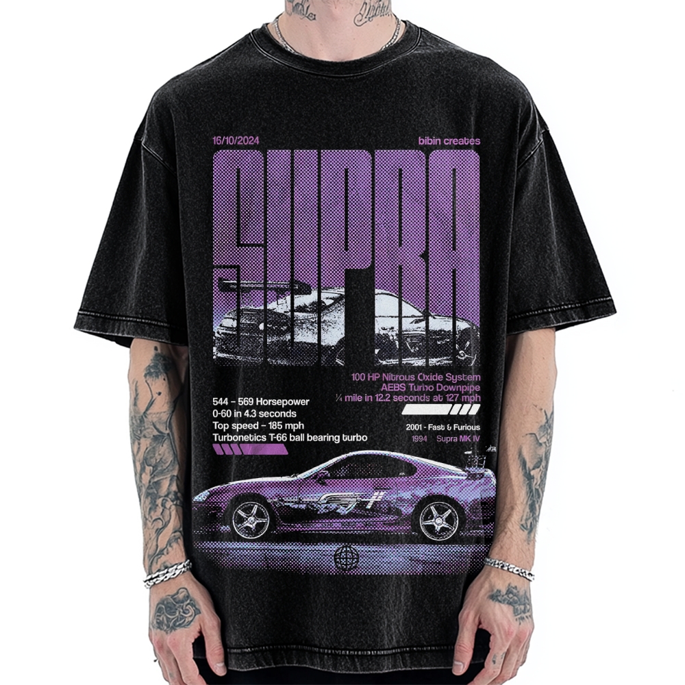 Tokyo-Assassin JDM R34 Skyline-Japanese Monster Retro Tuner Car Front And Back Printing Washed T-shirt