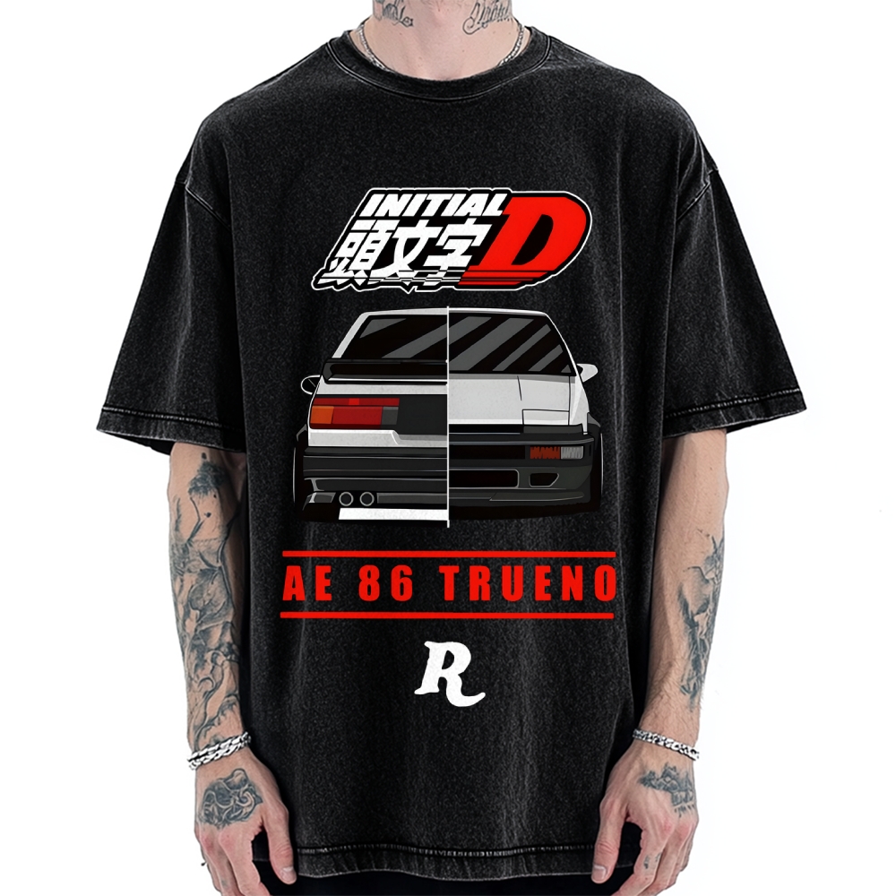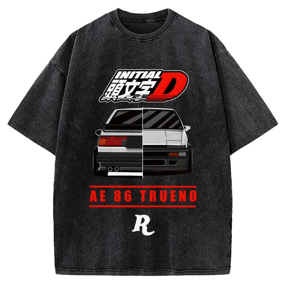 Tokyo-Assassin Japanese Racing Car AE86 Fujiwara Initial D Anime Game Vintage Washed T-shirt
