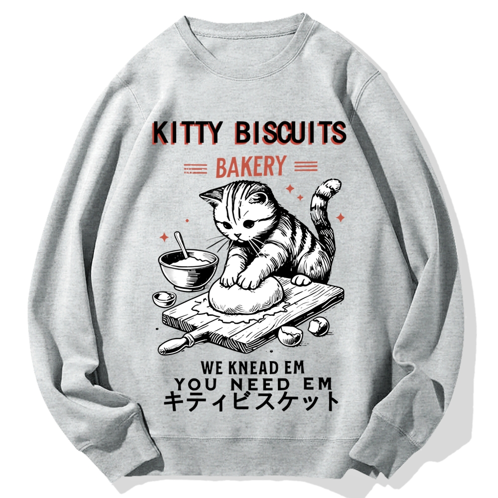 Tokyo-Assassin Kitty Biscuits Bakery We Knead Em Cotton Sweatshirt