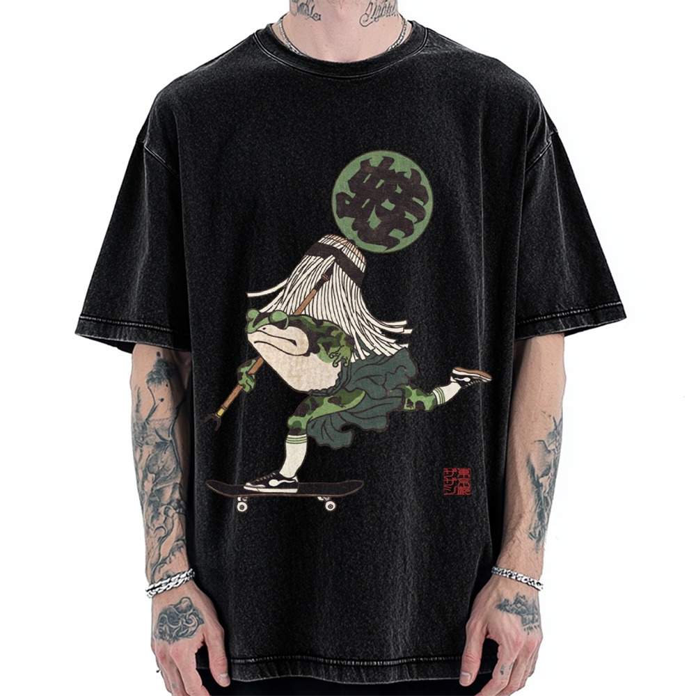 Tokyo-Assassin Ukiyo-e Style Skateboard Frog Vintage Washed T-shirt