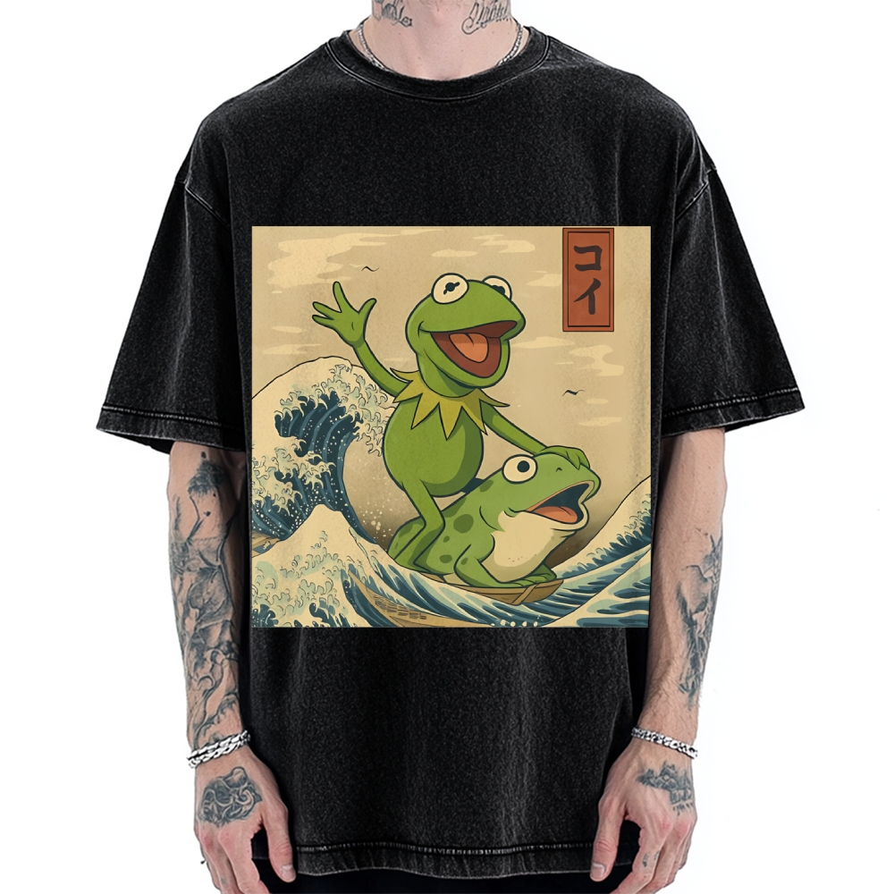 Tokyo-Assassin Funny Kermit Art Ukiyo-E Vintage Washed T-shirt