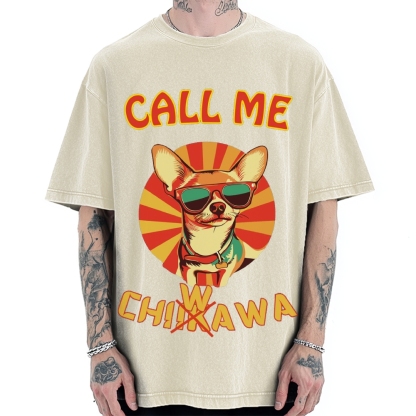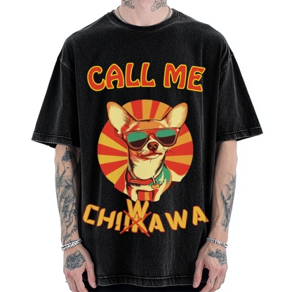 Tokyo-Assassin Call Me Chiwawa Not Chiikawa Funny Dog Vintage Washed T-shirt