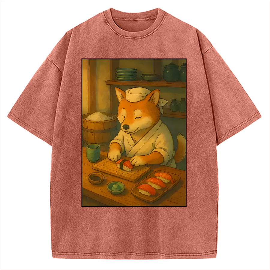 Tokyo-Assassin Dog Sushi Chef Vintage Washed T-shirt