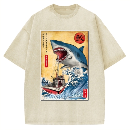 Tokyo-Assassin Hunting the Shark in Japan Vintage Washed T-shirt