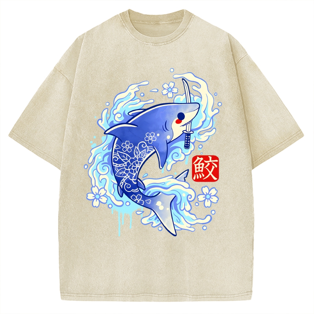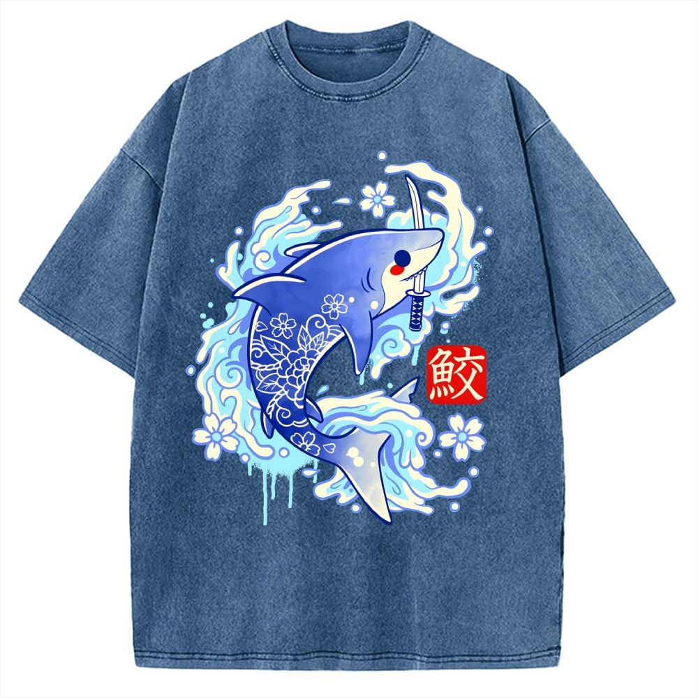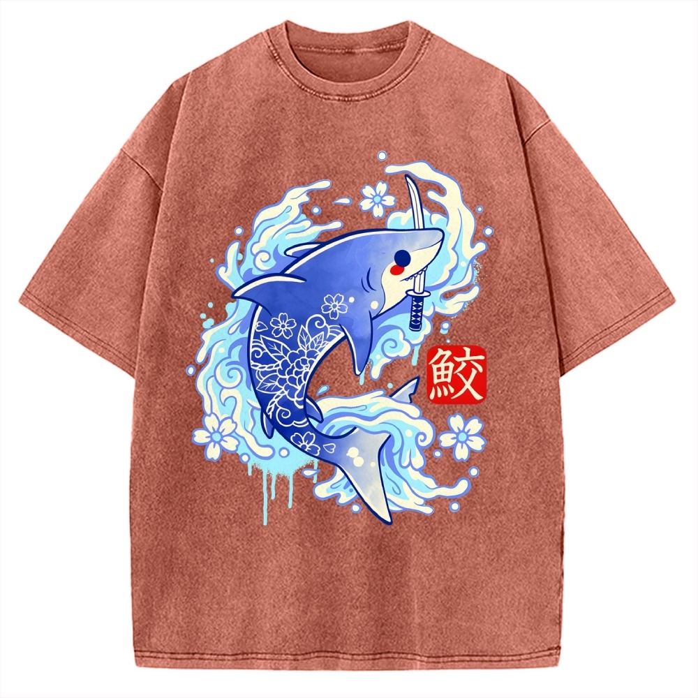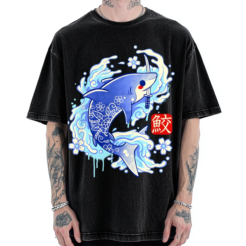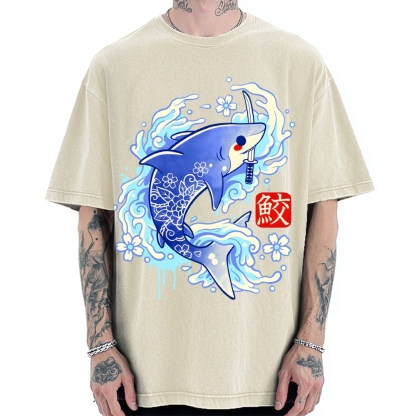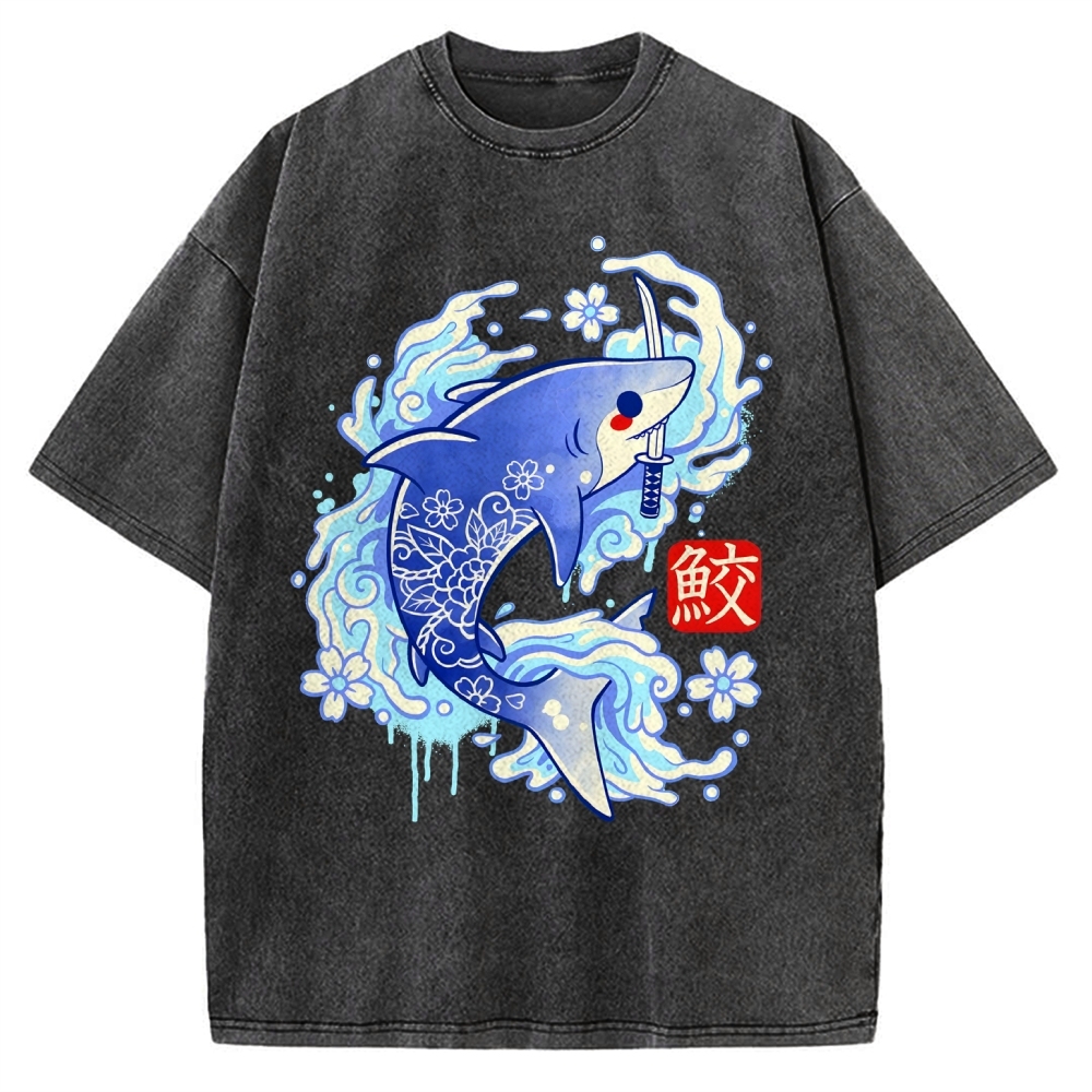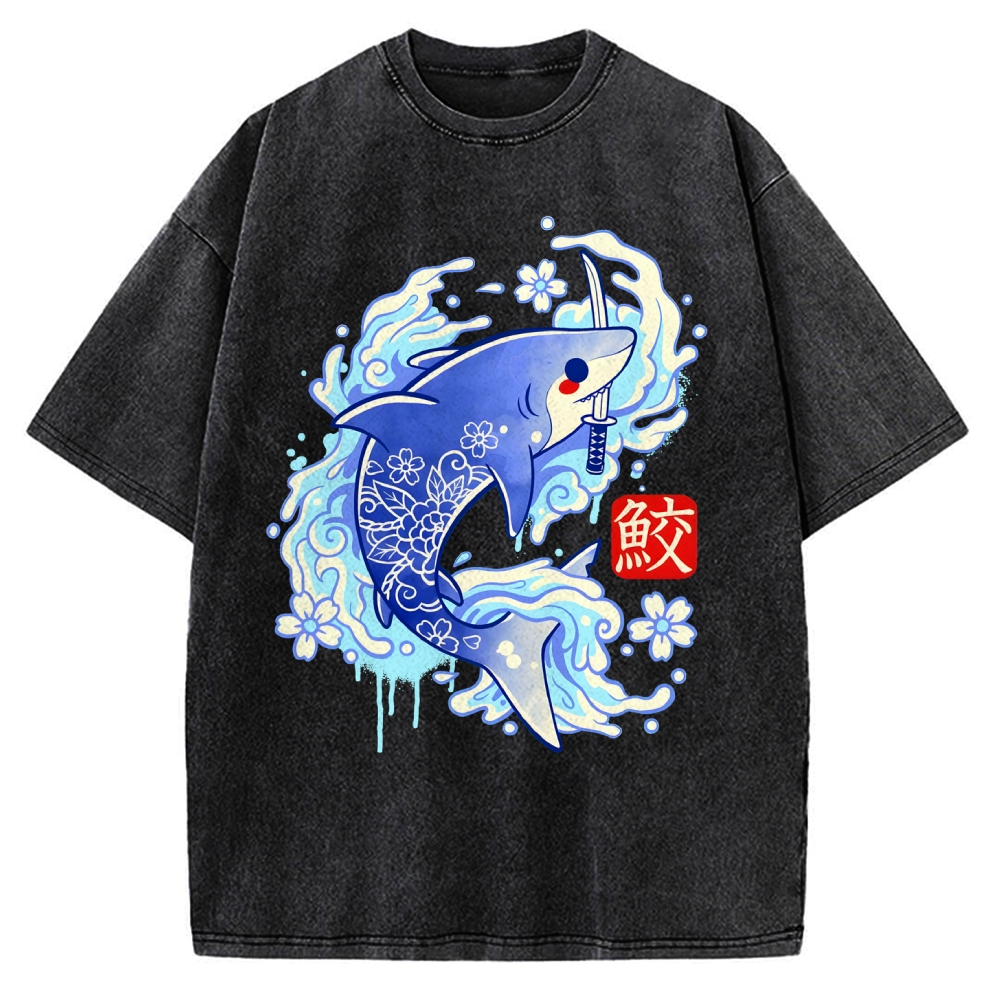 Tokyo-Assassin Japanese Shark Kawaii Vintage Washed T-shirt