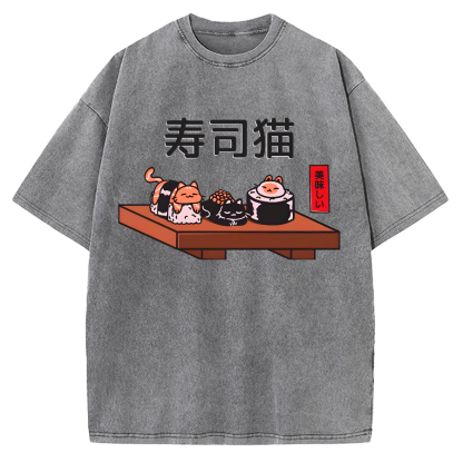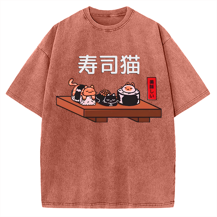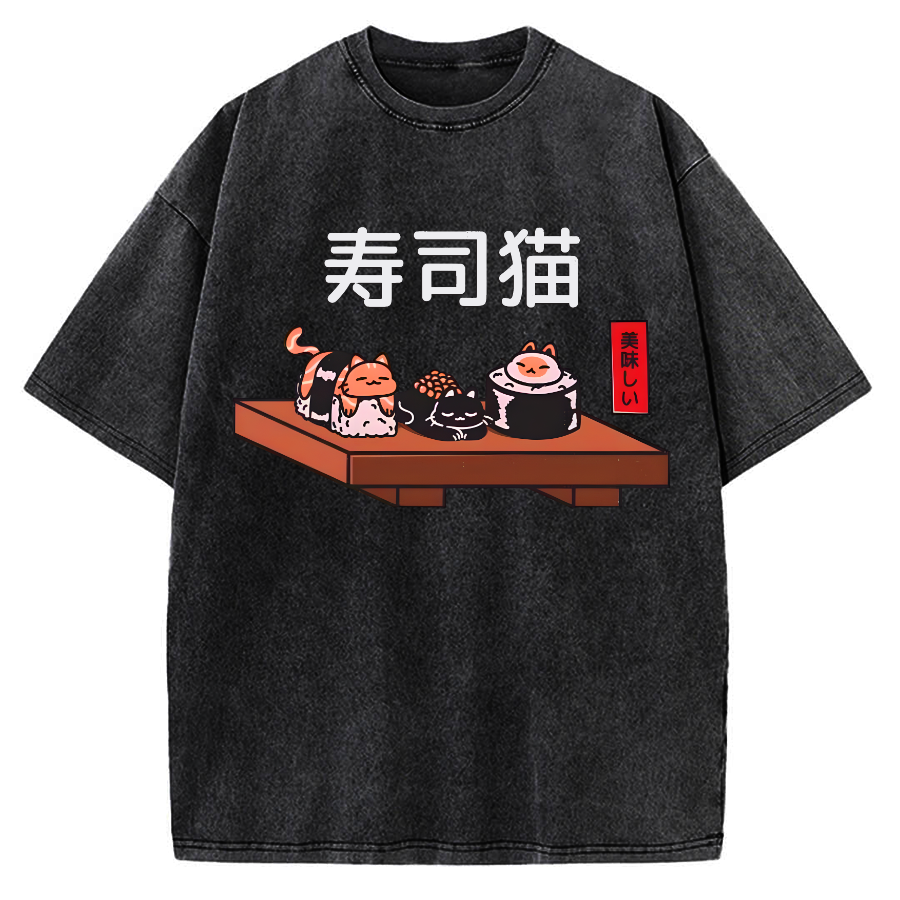 Tokyo-Assassin Kawaii Sushi Cats Vintage Washed T-shirt