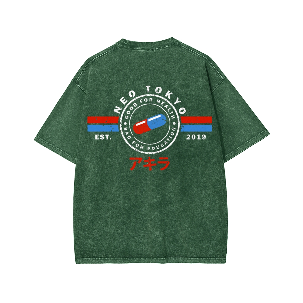 Tokyo-Assassin Neo Tokyo Akira Anime Front And Back Printing Washed T-shirt
