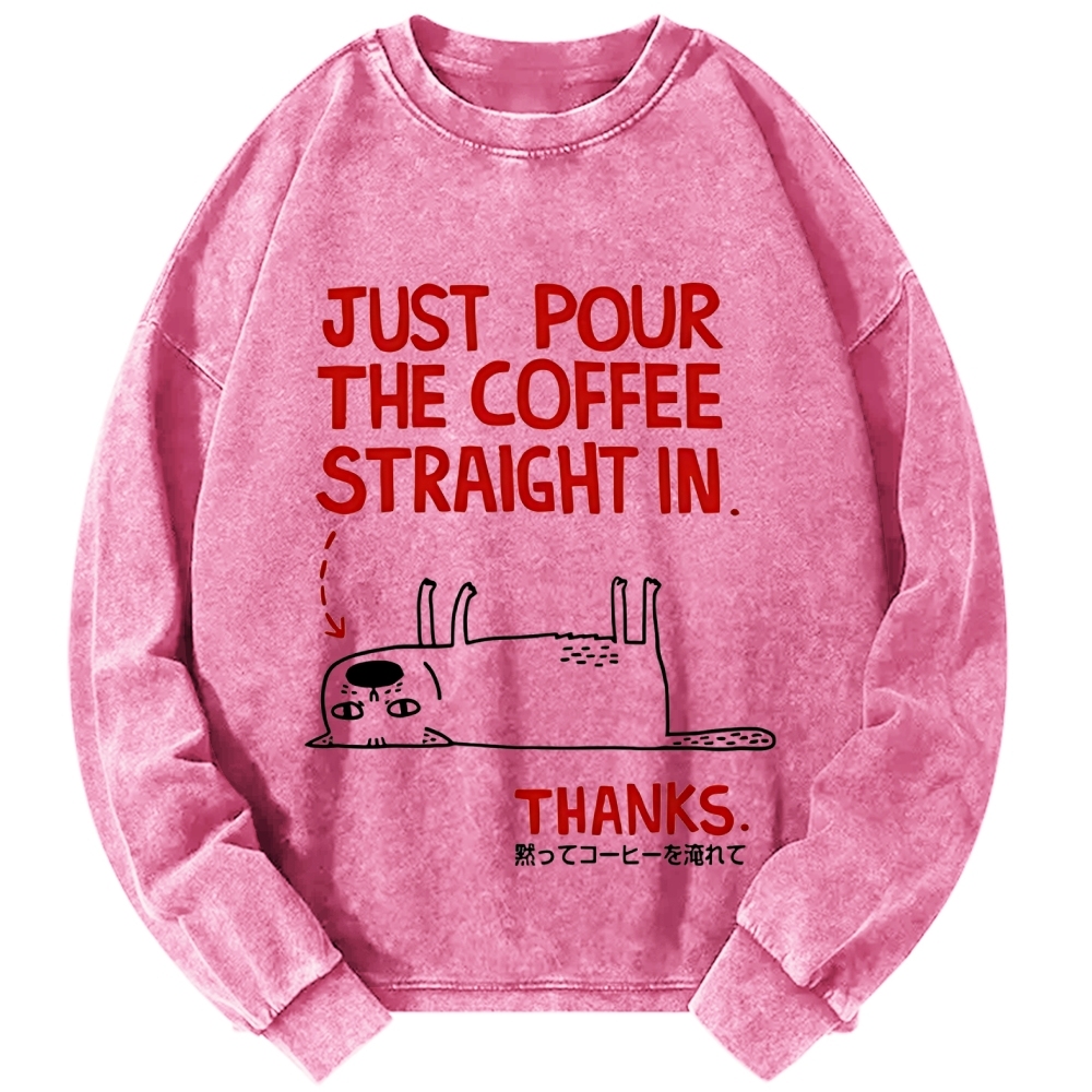 Tokyo-Assassin Pour the Coffee Cat Vintage Washed Sweatshirts