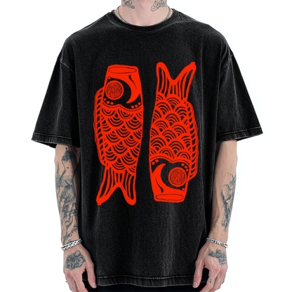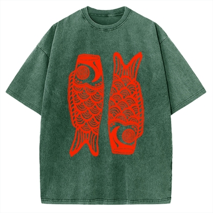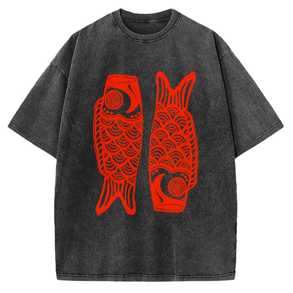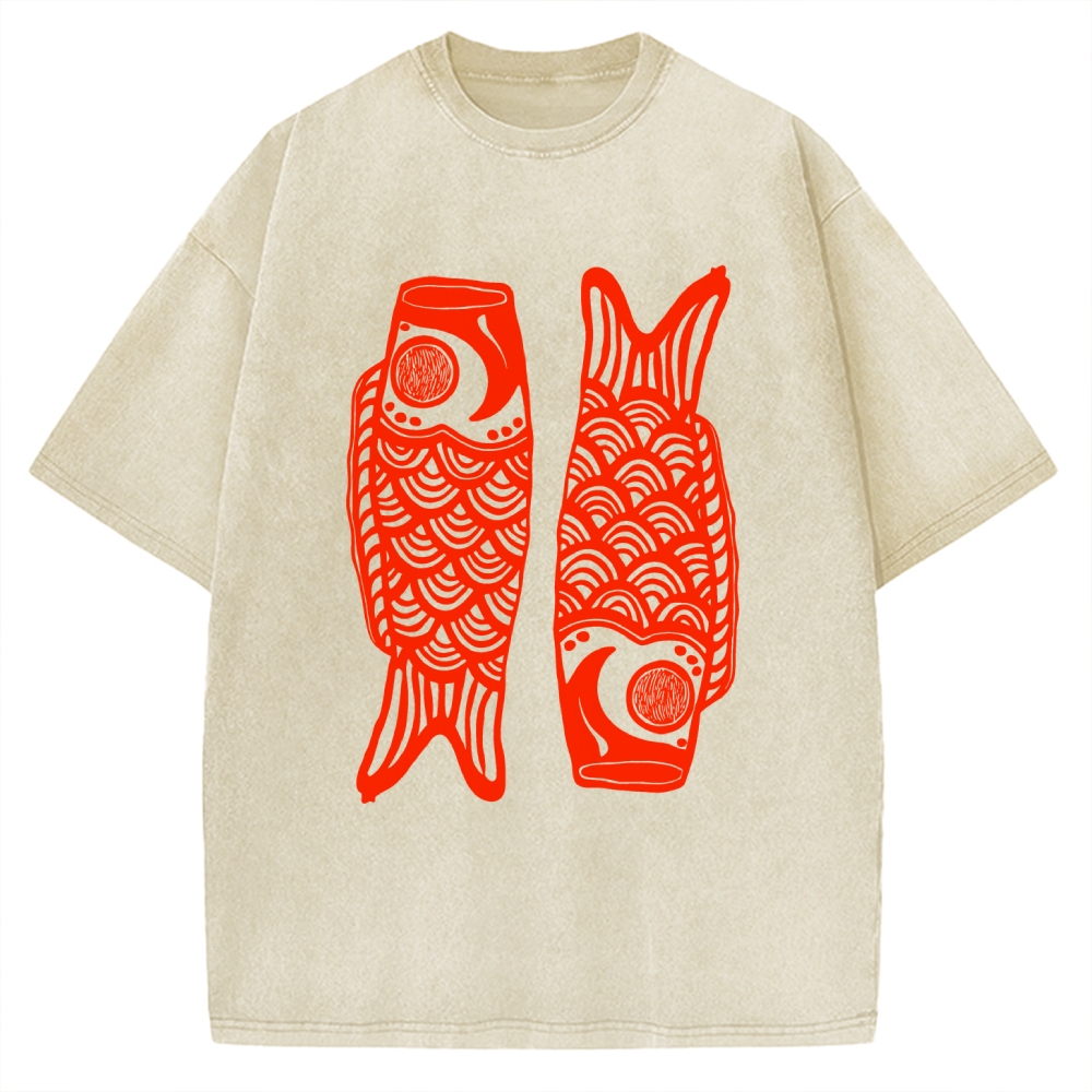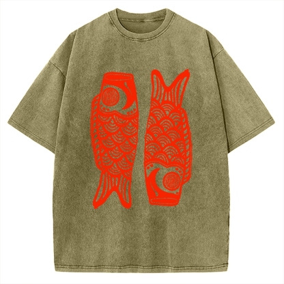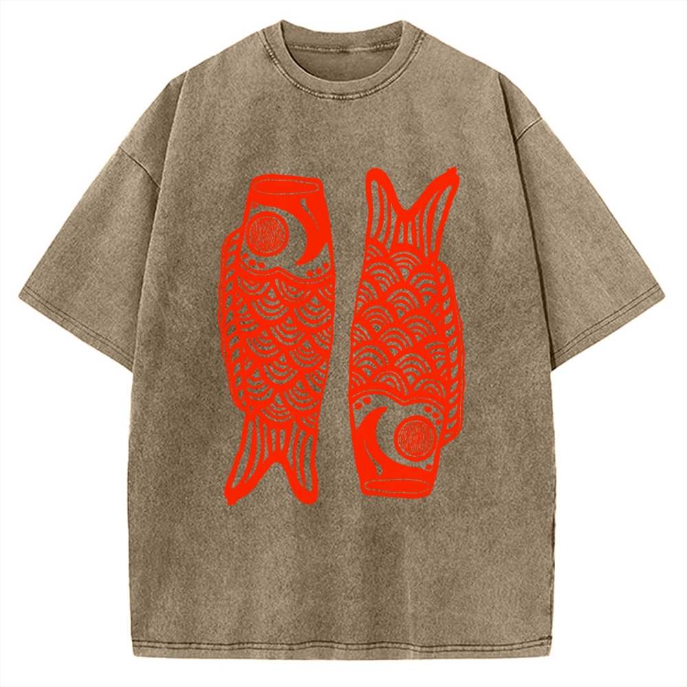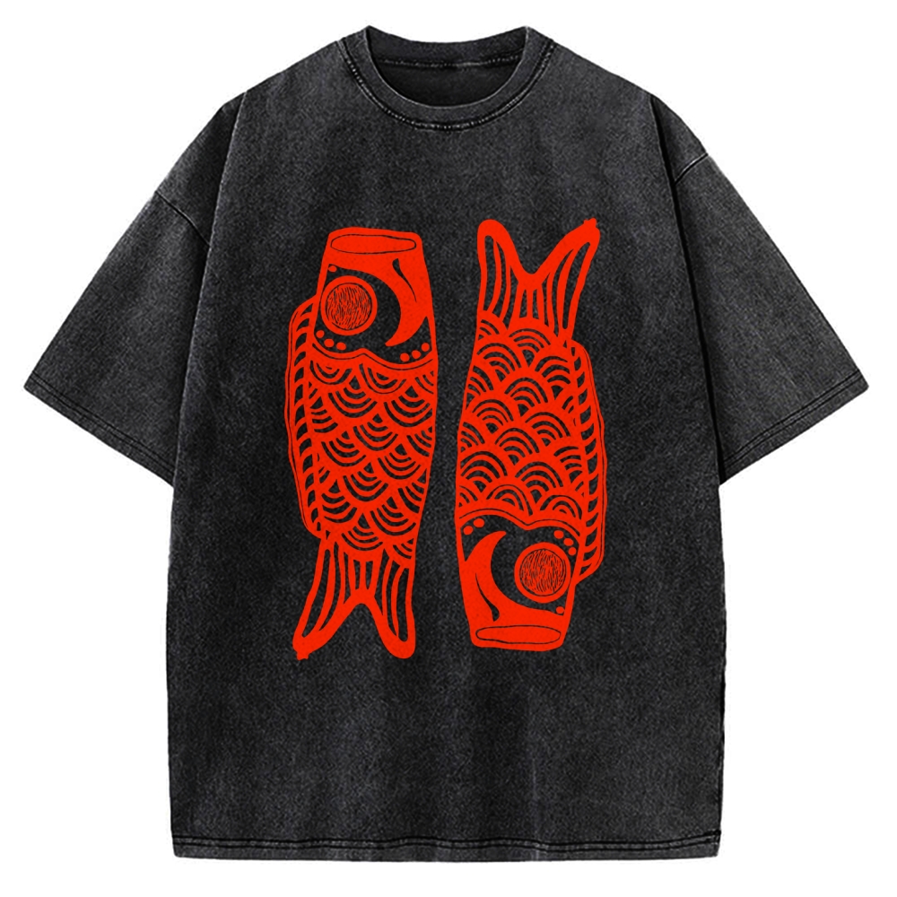 Tokyo-Assassin Retro Carp Streamer Vintage Washed T-shirt