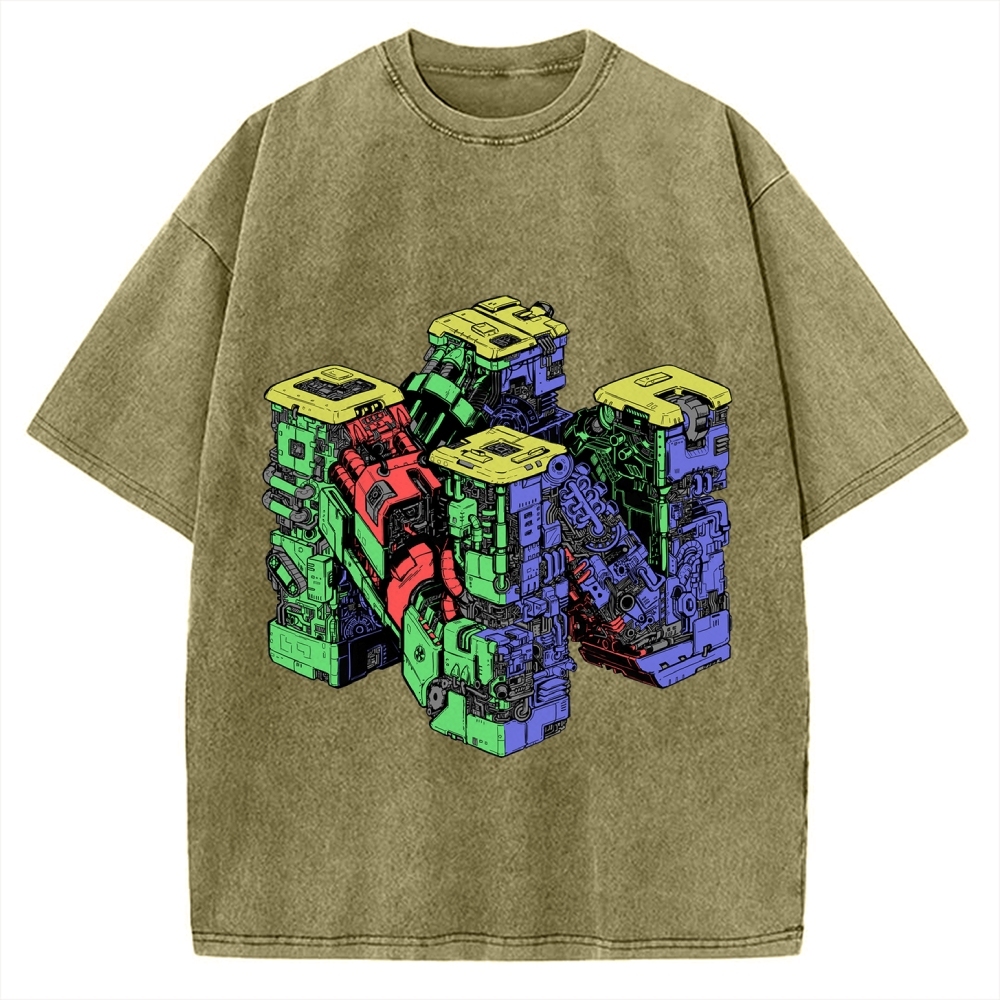 Tokyo-Assassin Steampunk style Mechanical parts N64 Japanese Entertainment System Vintage Washed T-shirt
