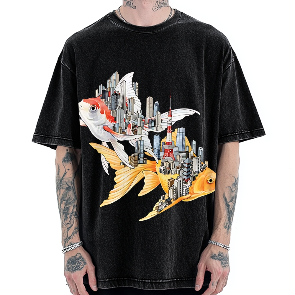 Tokyo-Assassin The city of carp in Japan: Tokyo Street View Vintage Washed T-shirt