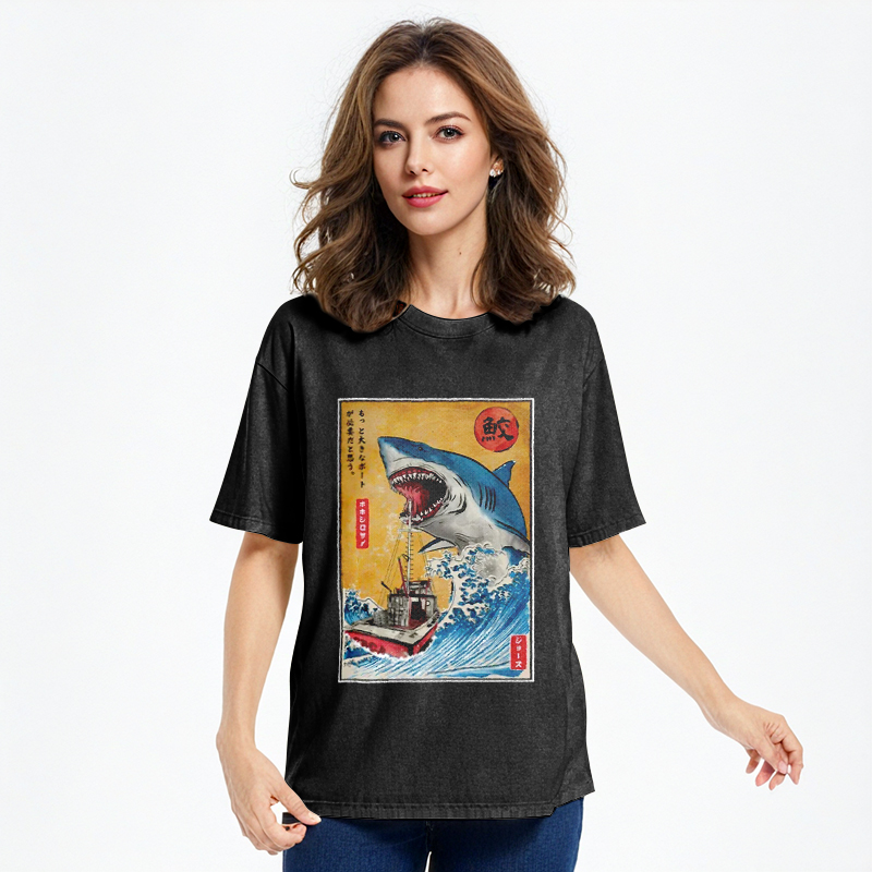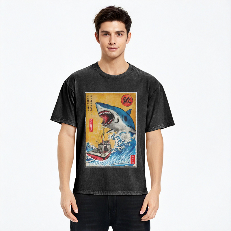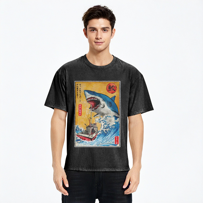 Tokyo-Assassin Ukiyoe Shark Japan Washed T-Shirt