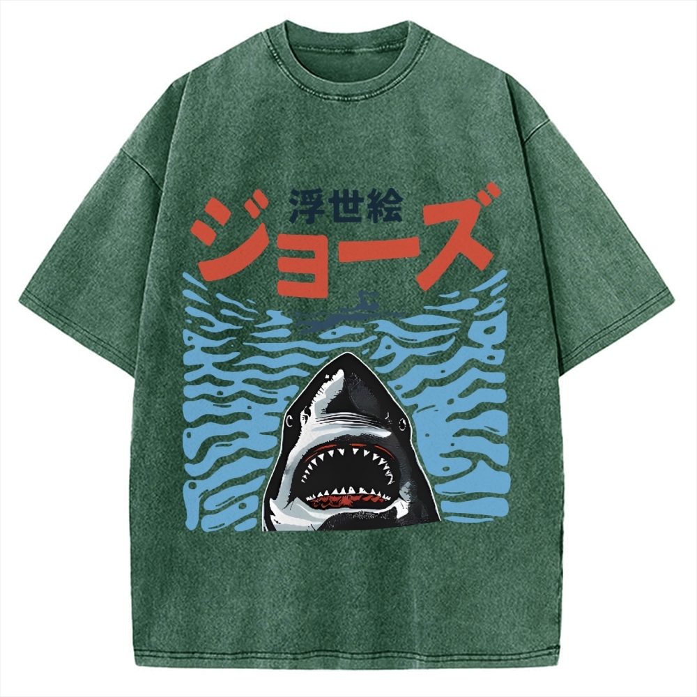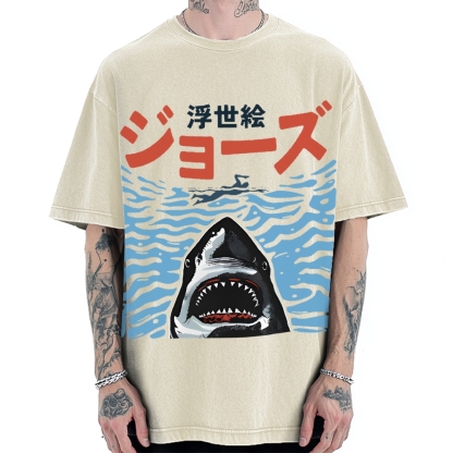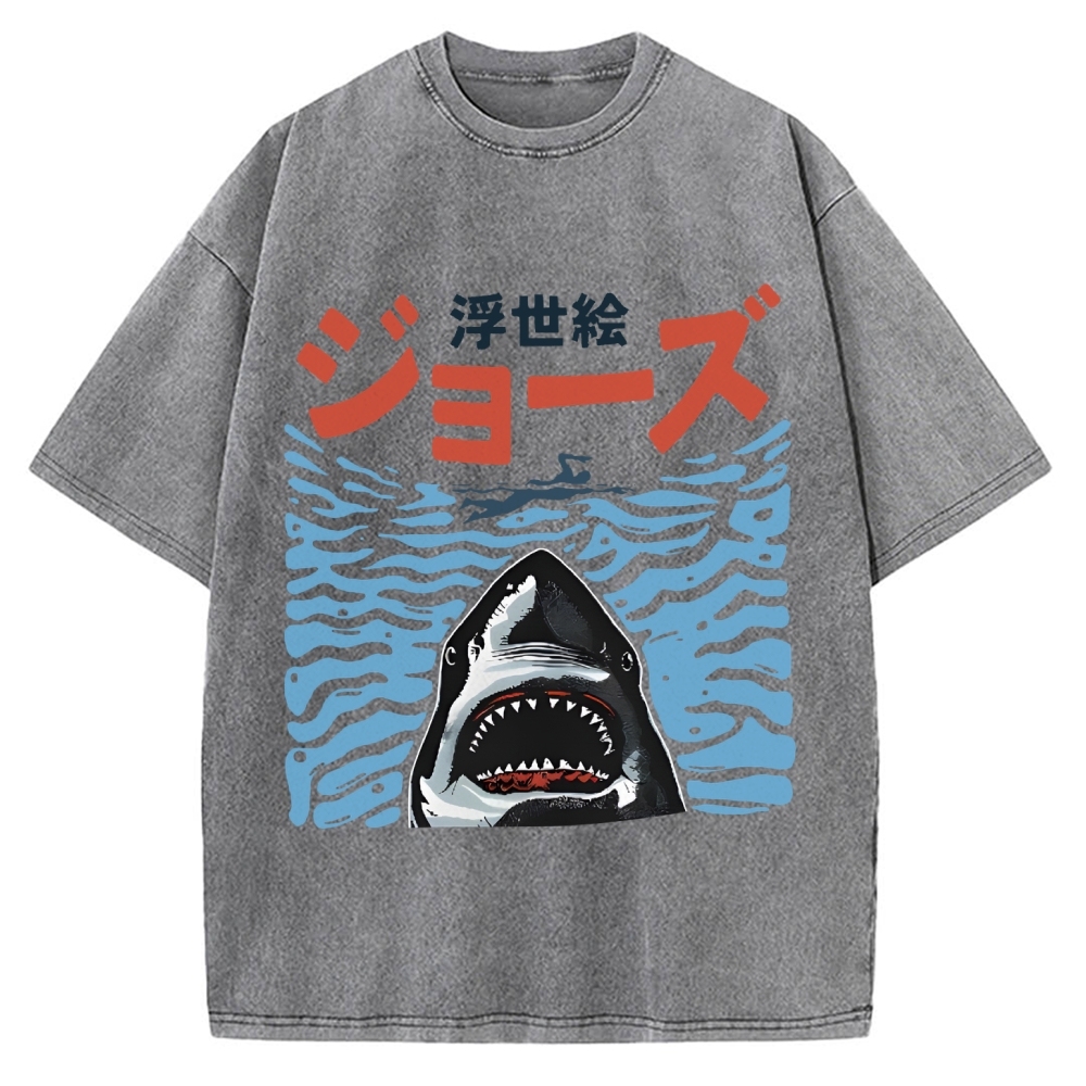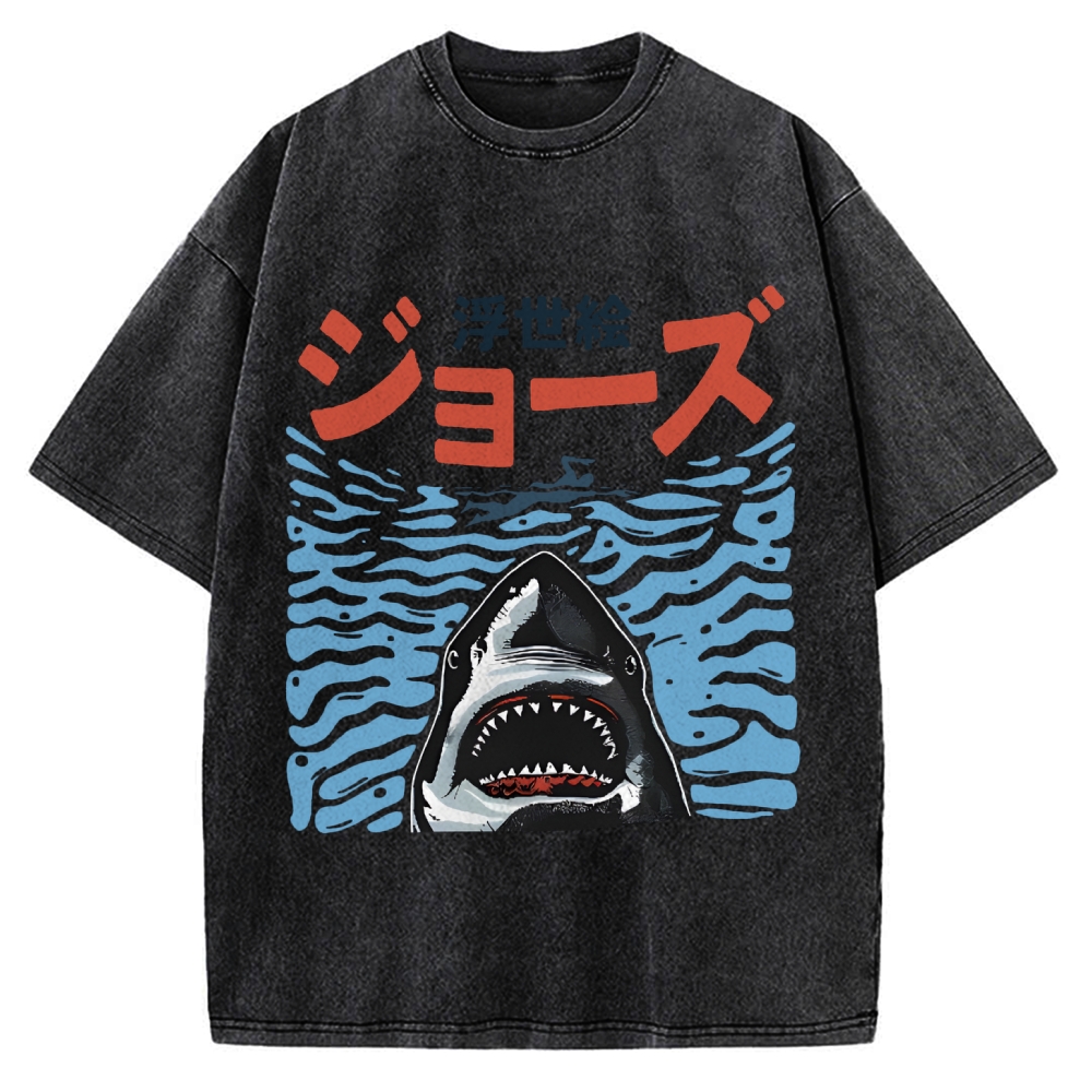 Tokyo-Assassin Ukiyoe Jaws Shark Vintage Washed T-shirt