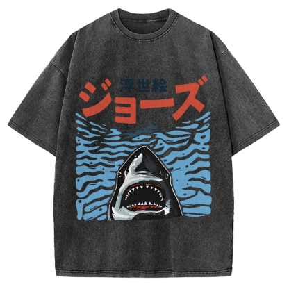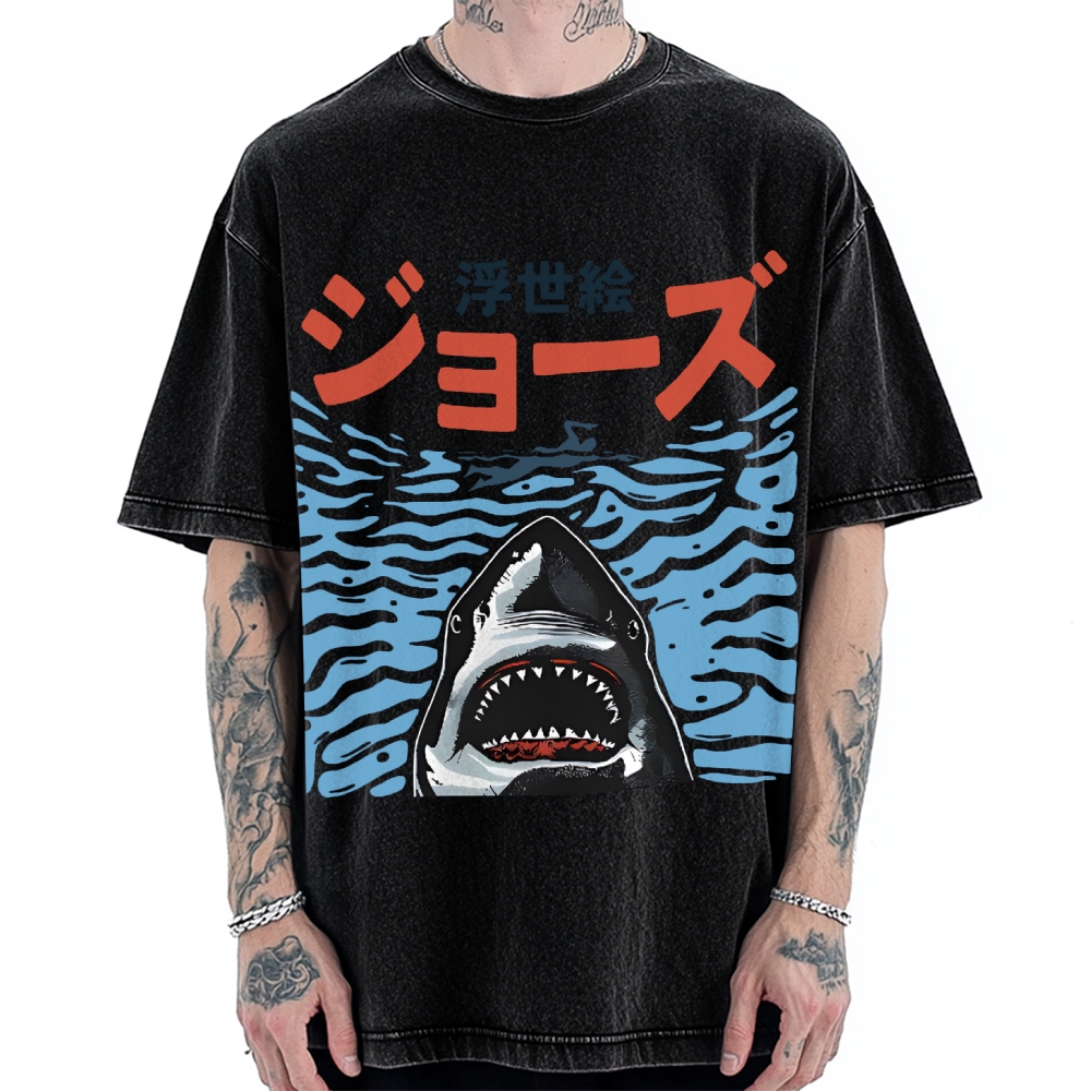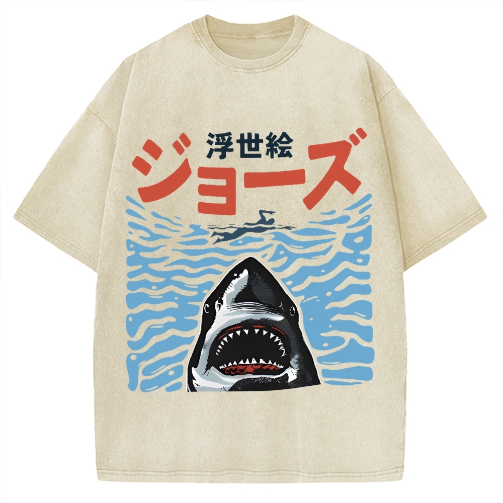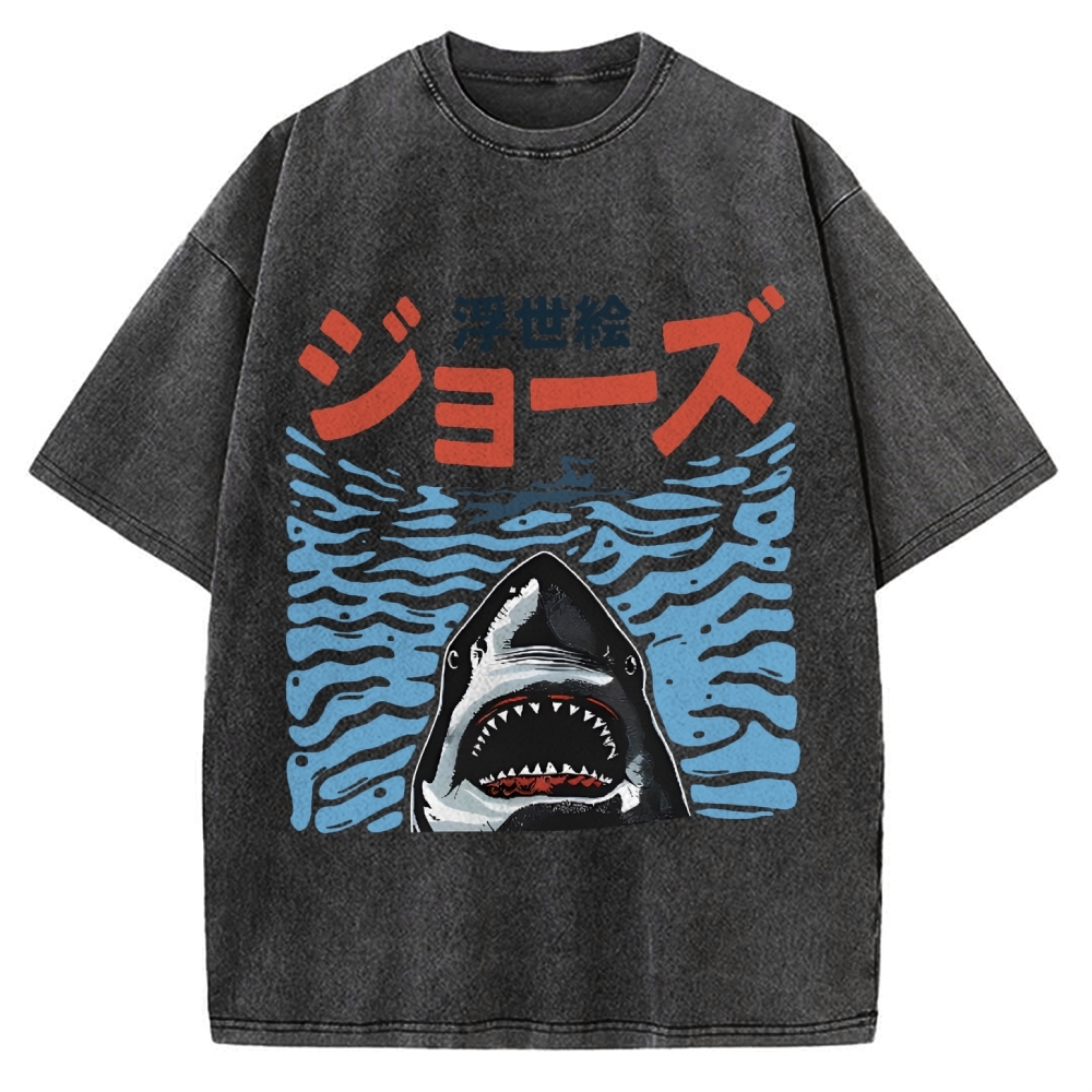 Tokyo-Assassin Ukiyoe Jaws Shark Vintage Washed T-shirt