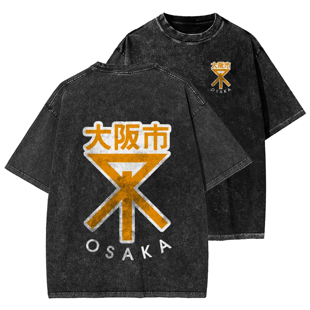 Tokyo-Assassin Osaka City Front Emblem And Back Printing Washed T-shirt