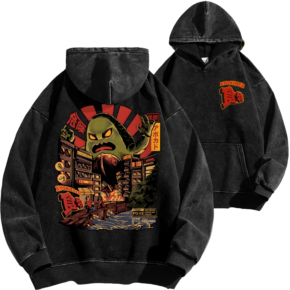 Tokyo-Assassin Avokiller Front And Back Printing Vintage Washed Hoodie