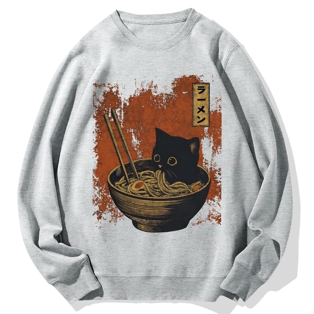 Tokyo-Assassin Black Cat Eating Ramen Cotton Sweatshirt