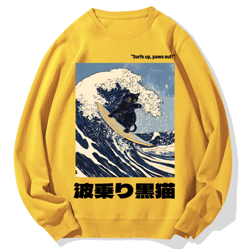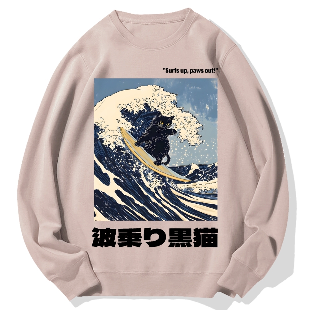 Tokyo-Assassin Black Cat Great Wave Cotton Sweatshirt