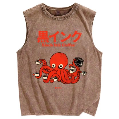 Tokyo-Assassin Black Ink Coffee Vintage Distressed Washed Tank Top