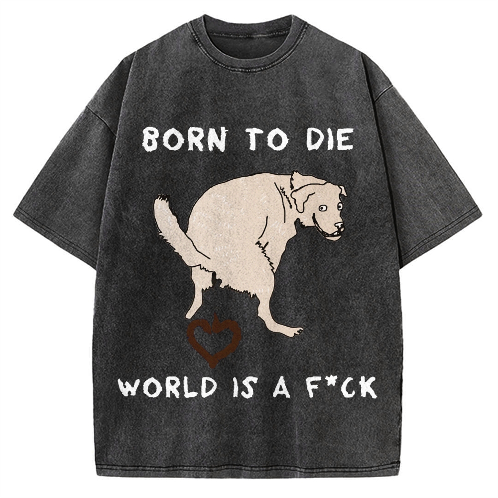 Tokyo-Assassin Born To Die World Is A F*ck Funny Dog Vintage Washed T-shirt