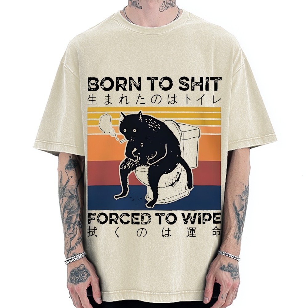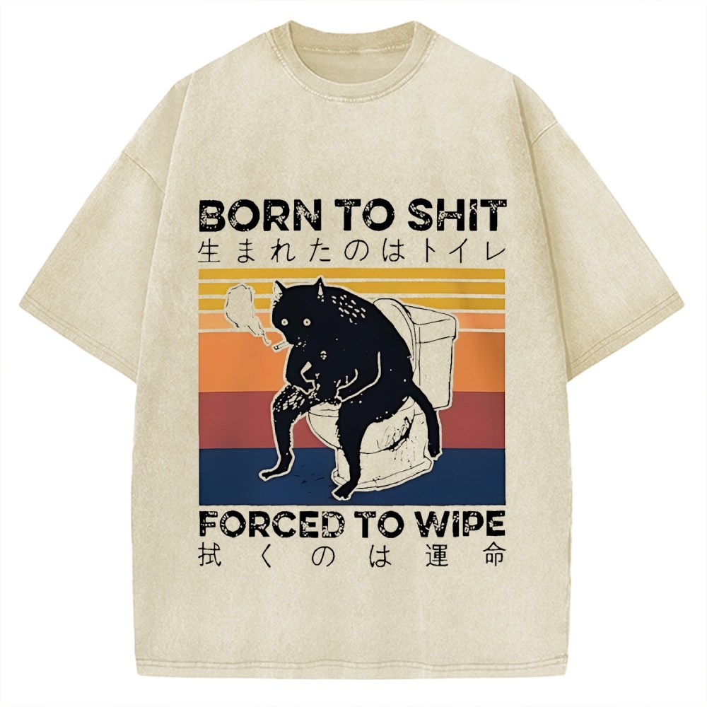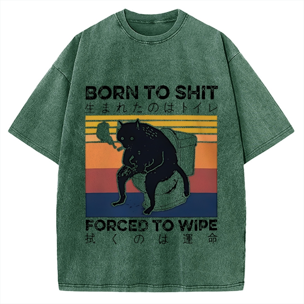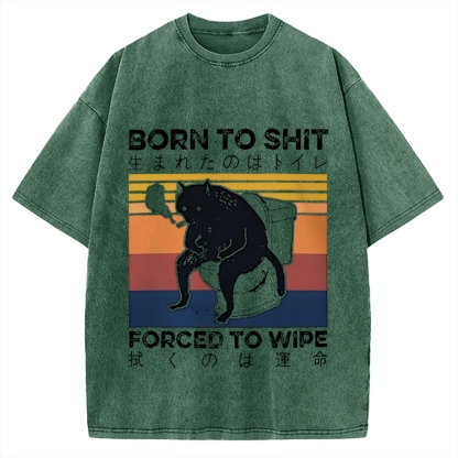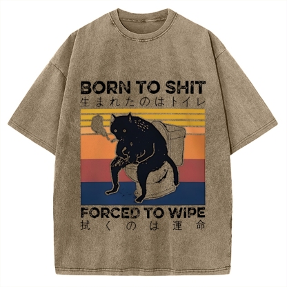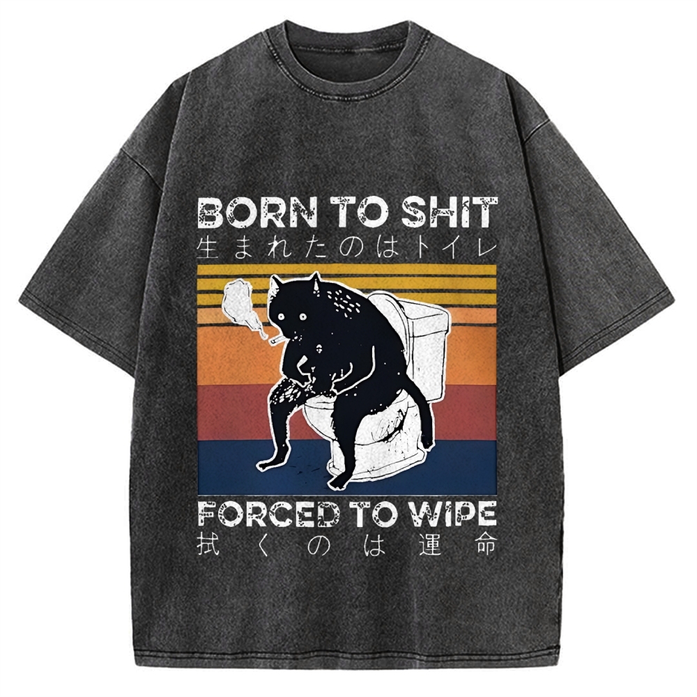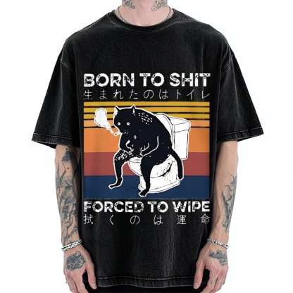 Tokyo-Assassin Born To Shit Forced To Wipe Cat Meme Vintage Washed T-shirt