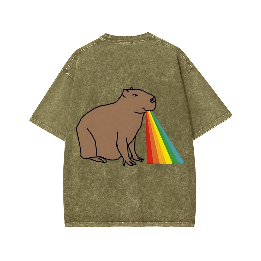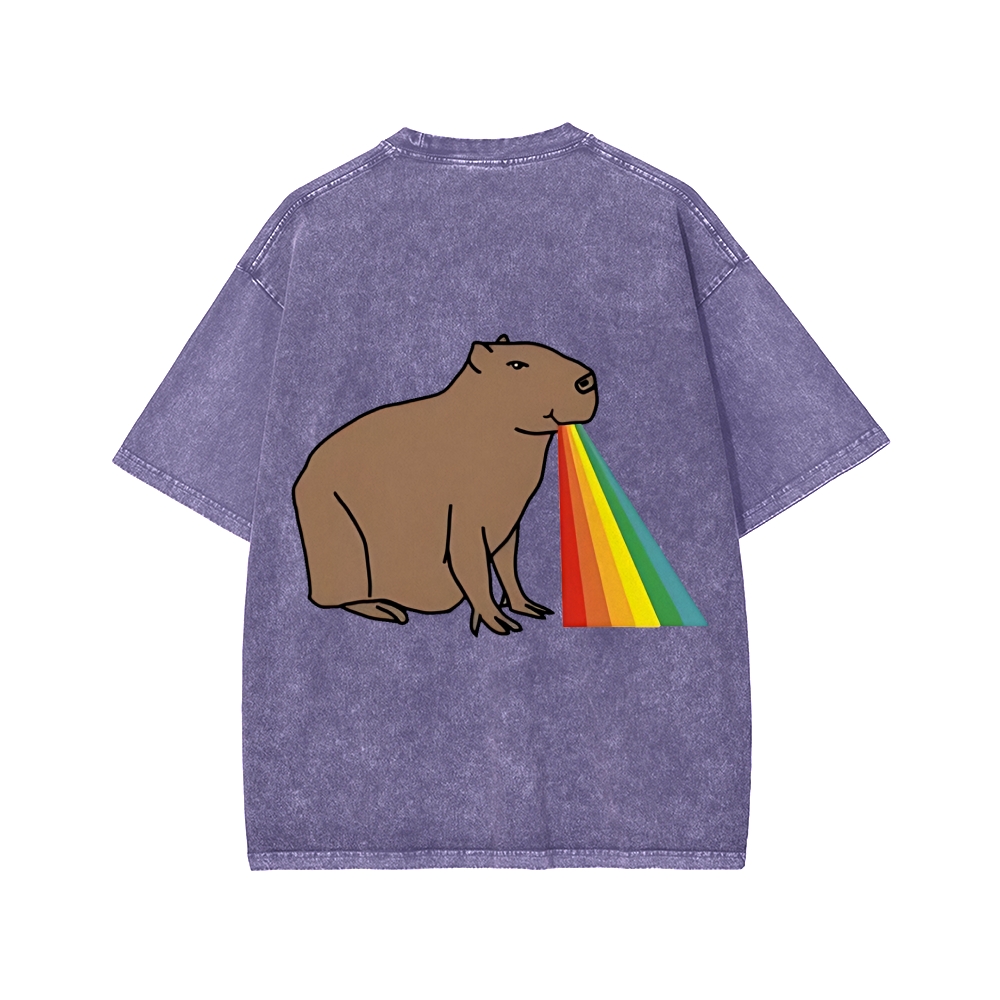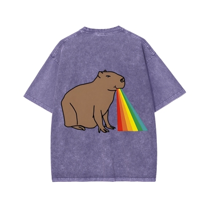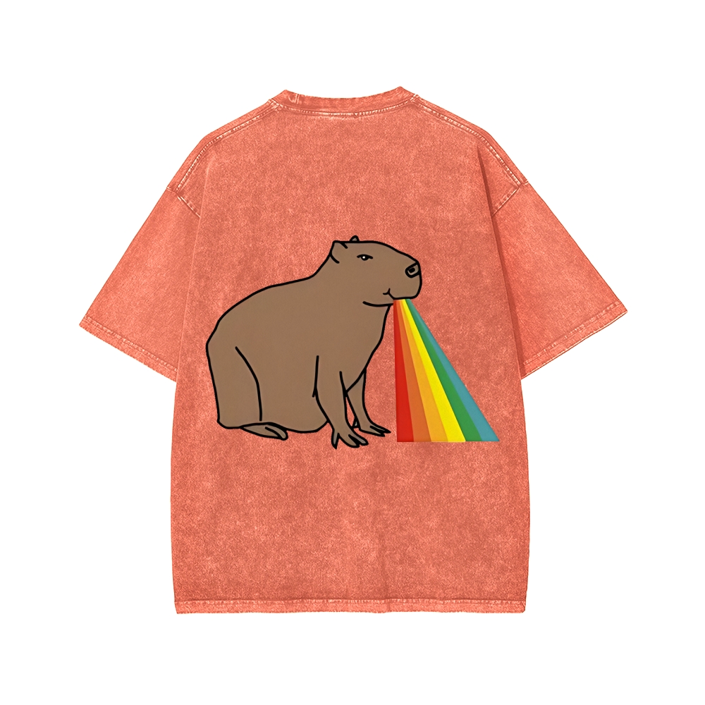 Tokyo-Assassin Capybara Rainbow Front And Back Printing Washed T-shirt