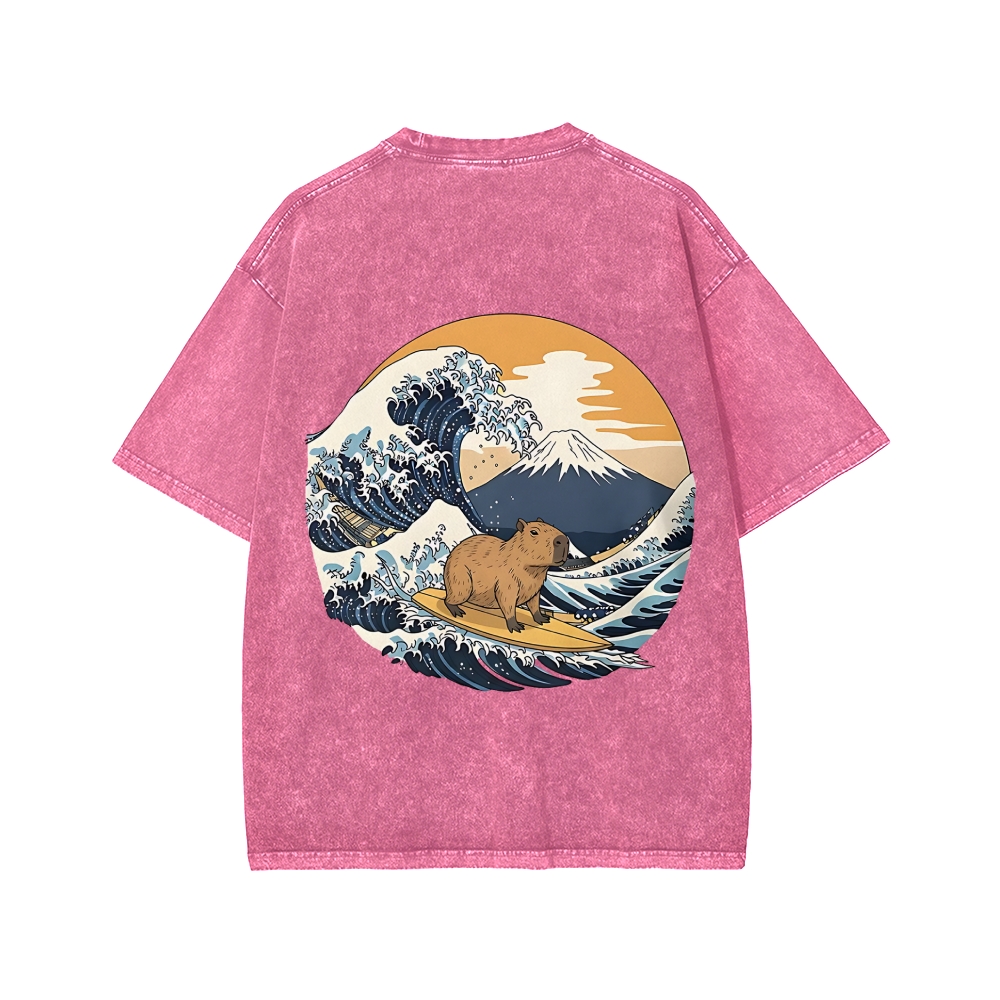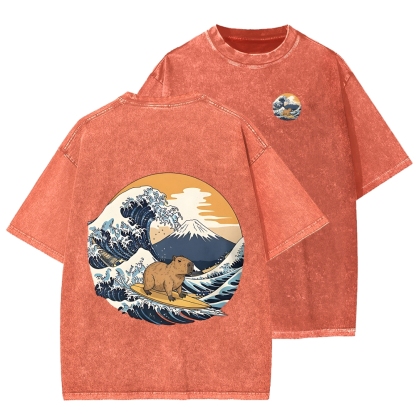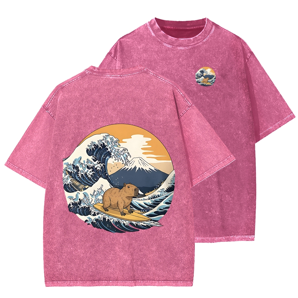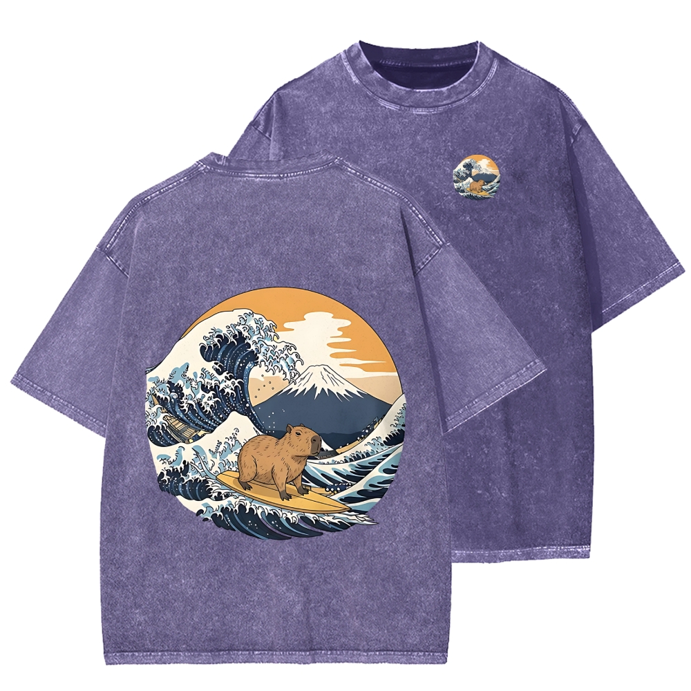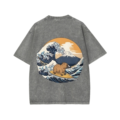 Tokyo-Assassin Capybara Wave Front And Back Printing Washed T-shirt
