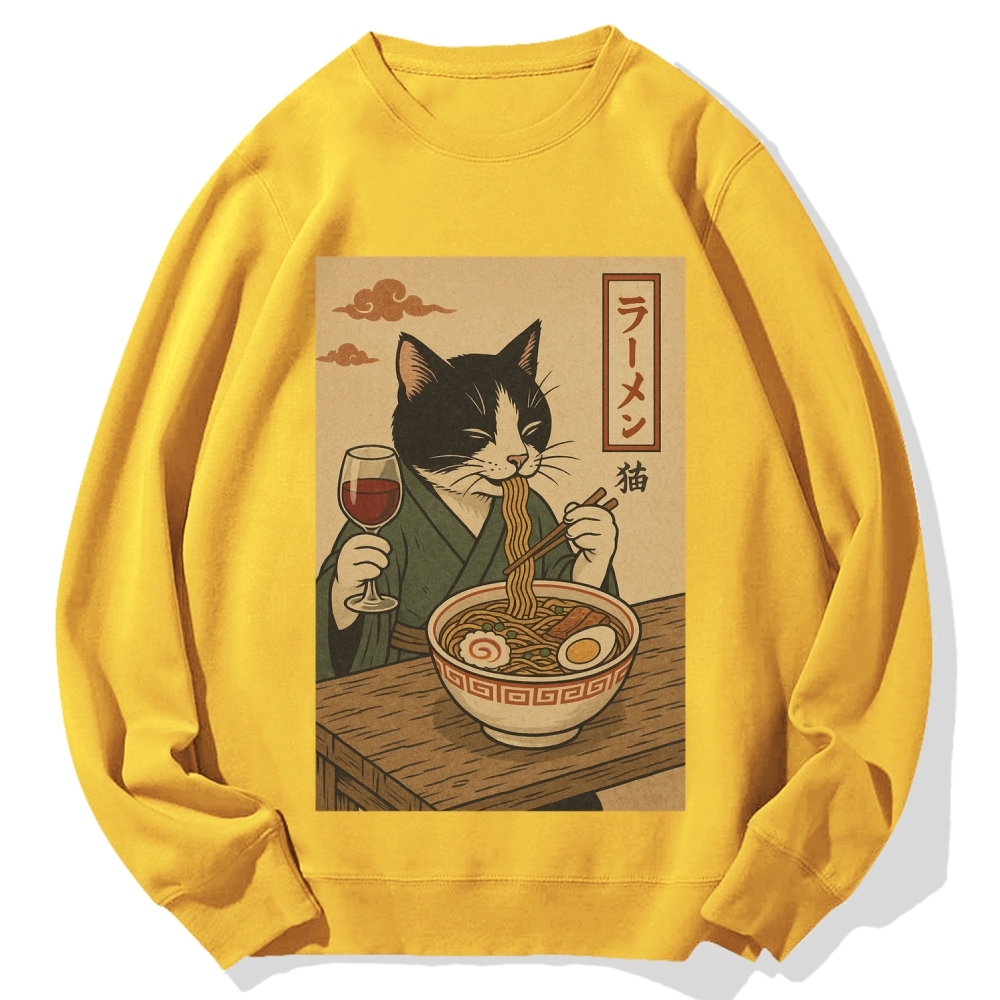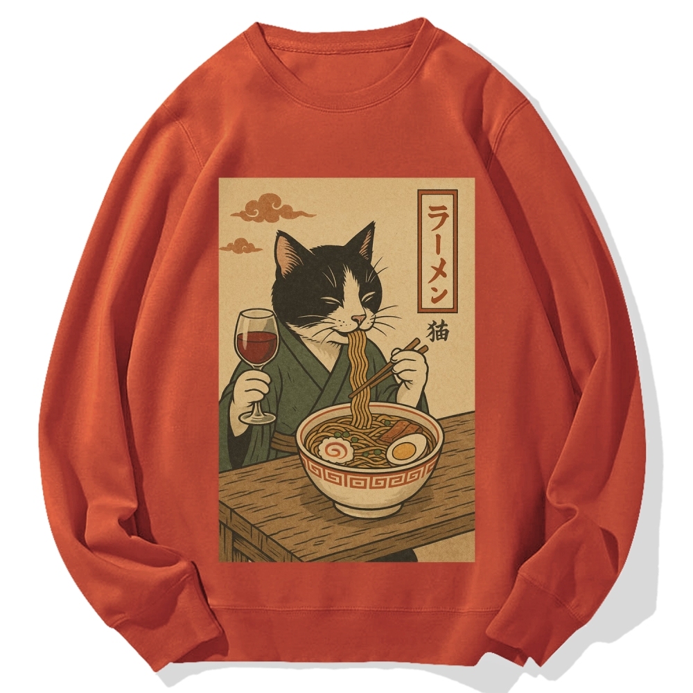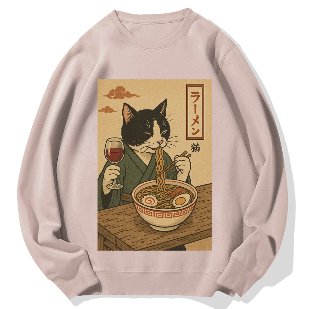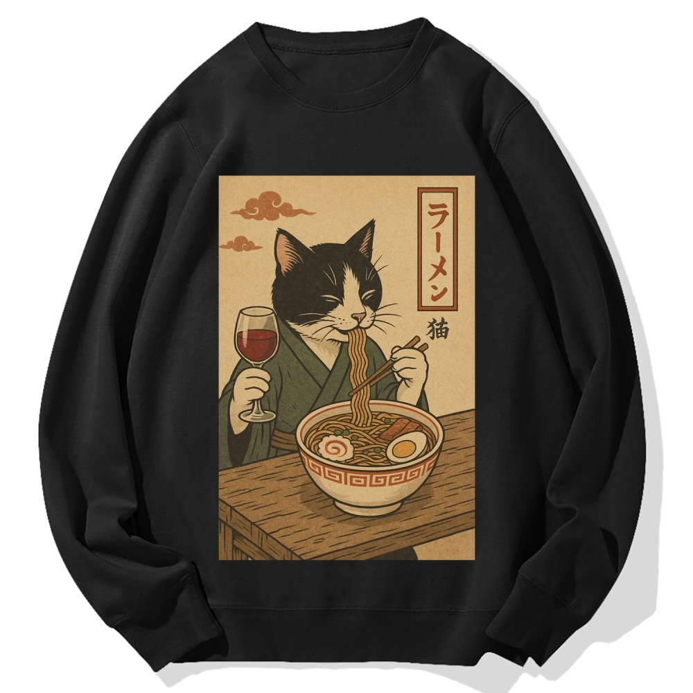 Tokyo-Assassin Cat Eating Ramen Cotton Sweatshirt