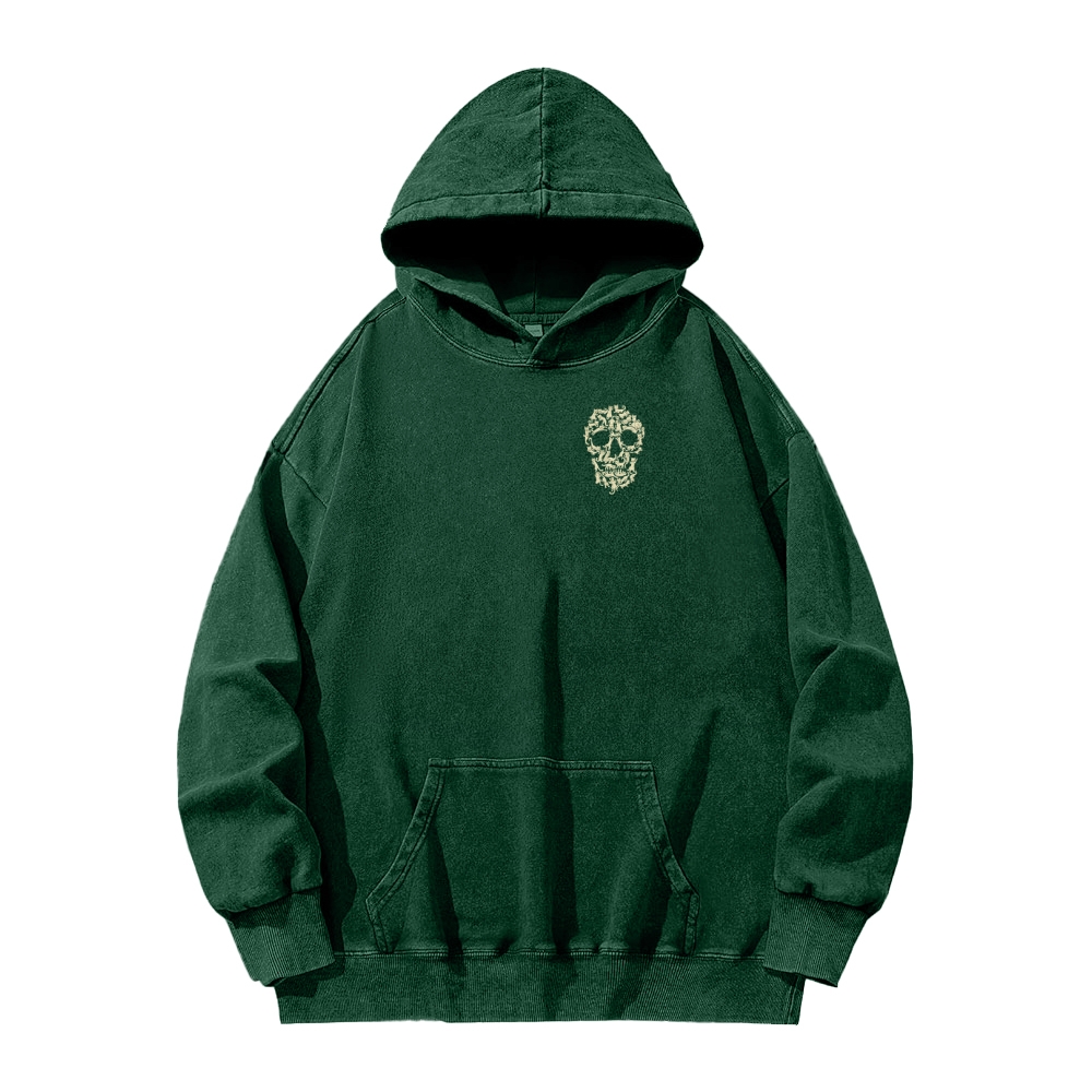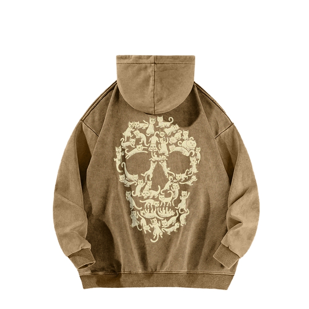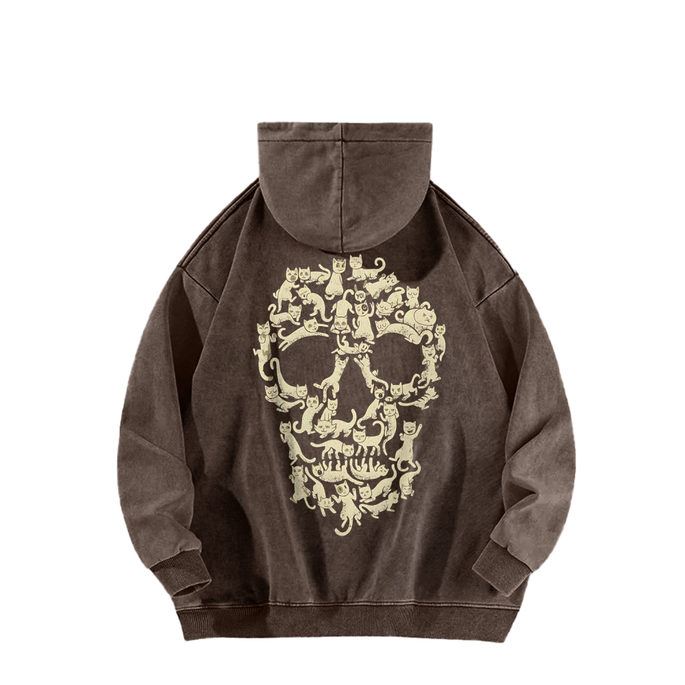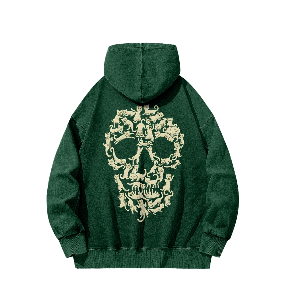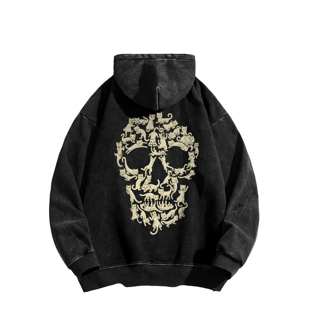 Tokyo-Assassin Cat Skull Front And Back Printing Vintage Washed Hoodie