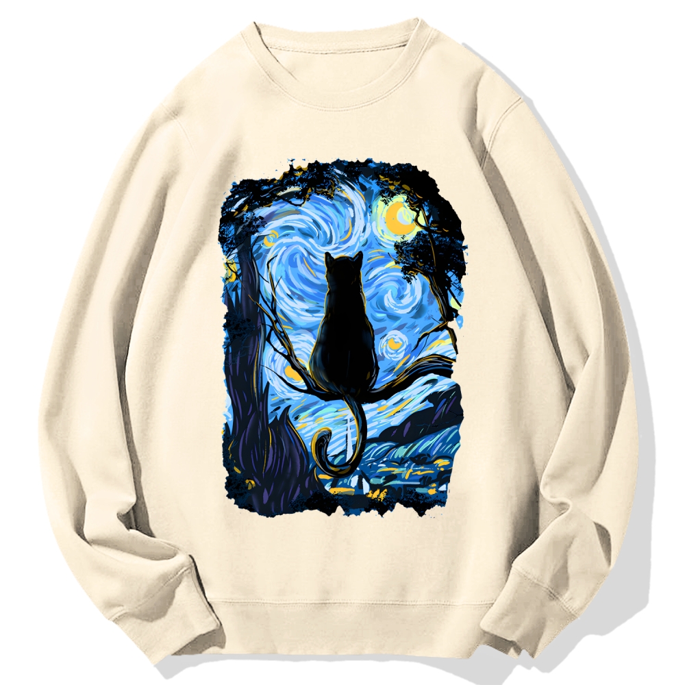 Tokyo-Assassin Cat Starry Night Cotton Sweatshirt