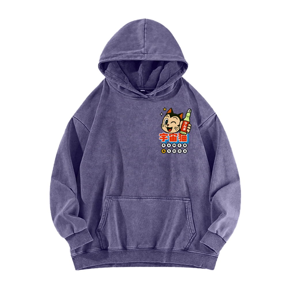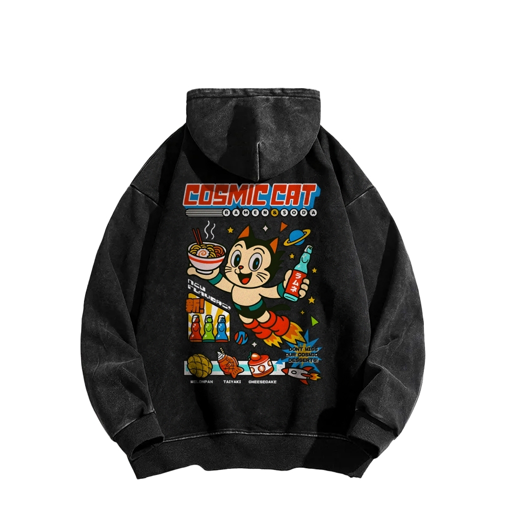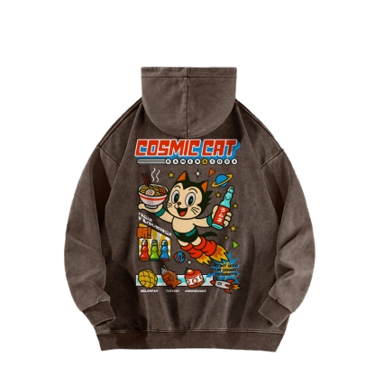 Tokyo-Assassin Cosmic Cat Front And Back Printing Vintage Washed Hoodie