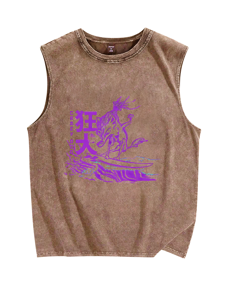 Tokyo-Assassin Crazy Dog Vintage Distressed Washed Tank Top