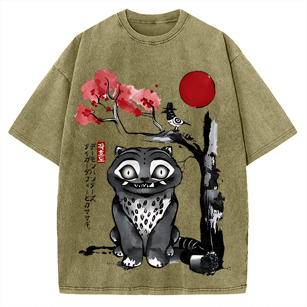 Tokyo-Assassin Derpy Tiger and Sussy Demon Hunters Japanese sumi-e Vintage Washed T-shirt